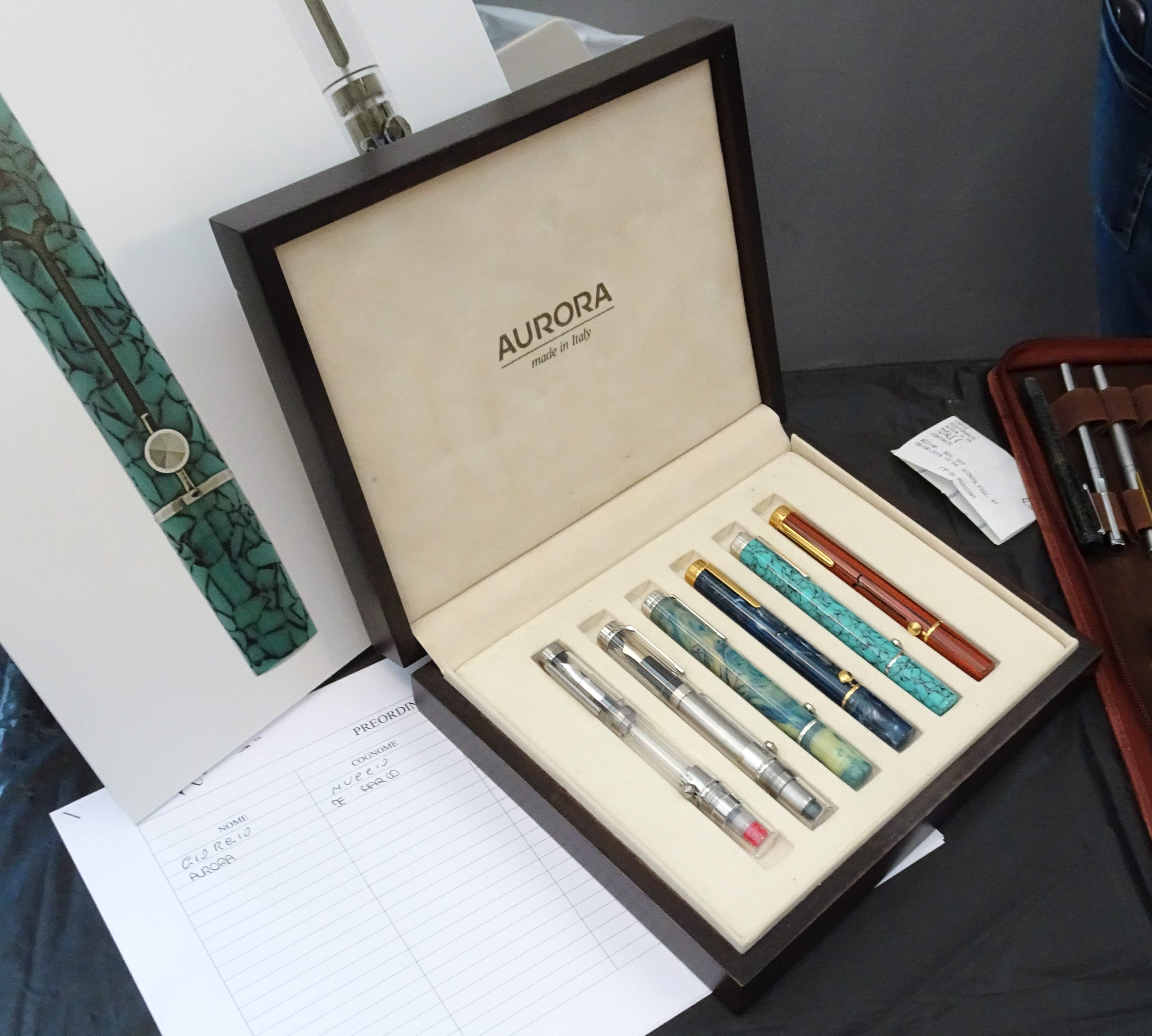 Poi, sotto la guida del sig. Filippo di Aurora, la prova di una scatola intera di fantastiche Optima in resina Auroloide blu, una goduria...pennini di ogni tipo immaginabile da voi umani e disumani