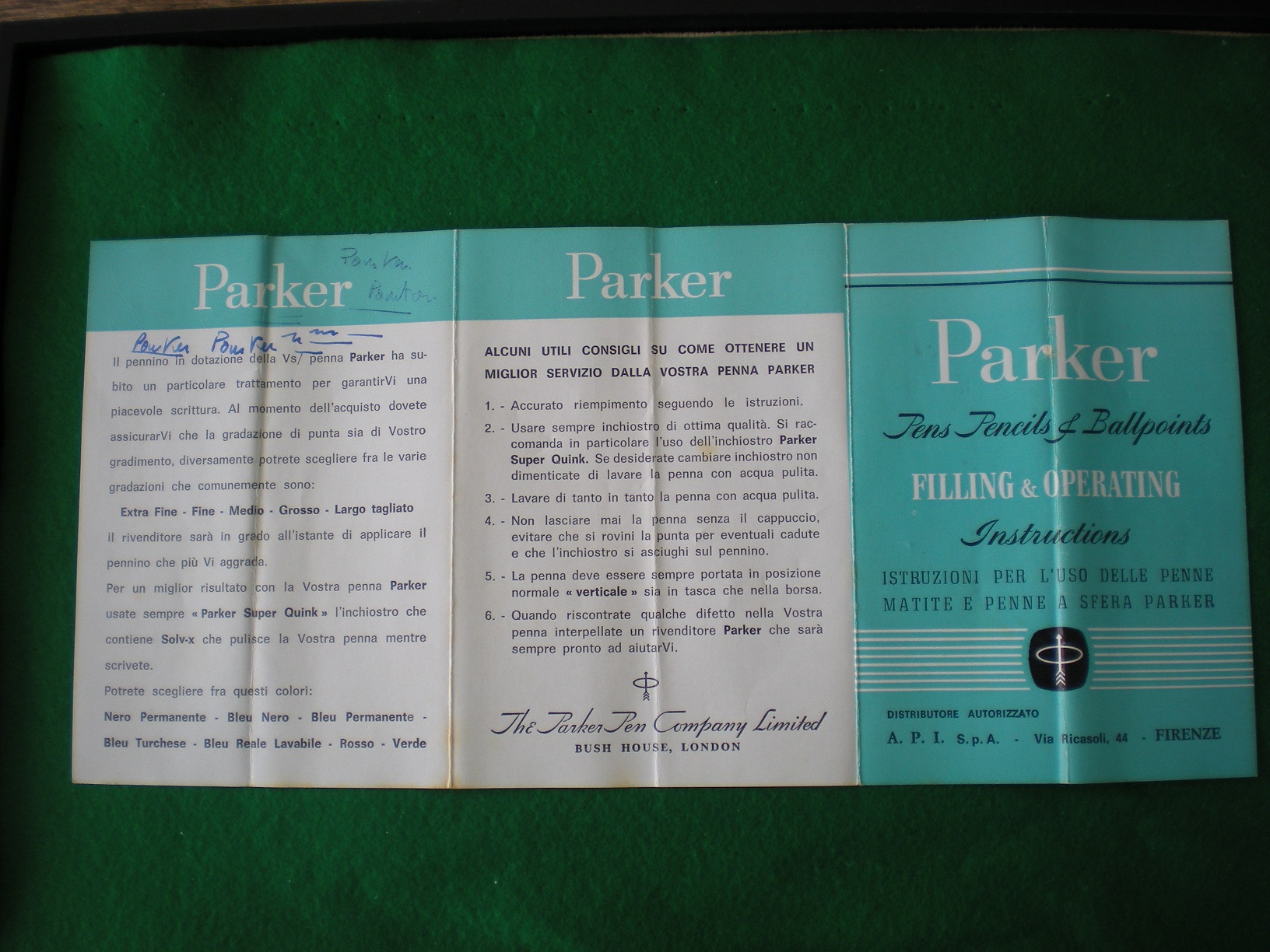 il cappuccio è placcato oro con le scritte PARKER - MADE IN FRANCE e entro un quadrato le lettere P P con in mezzo la freccia