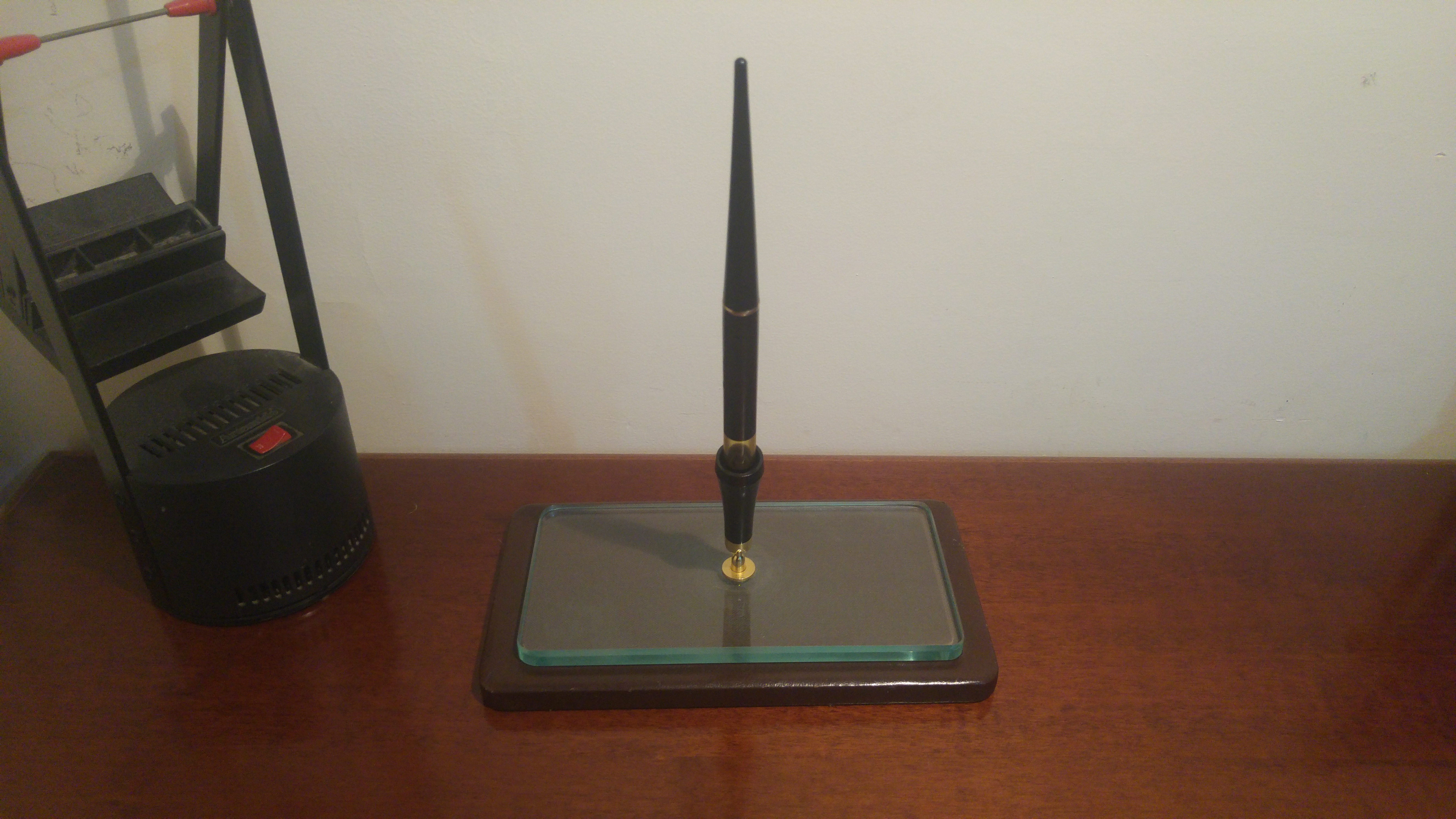 Che dire se non che è un mago! Comunque il buon Massimo non poteva assolutamente immaginarsi la grama vita che attendeva questo signore in frac senza un elegante casa in cui riposare, e quindi mi ha restituito stiloforo e base per stiloforo originale Omas.