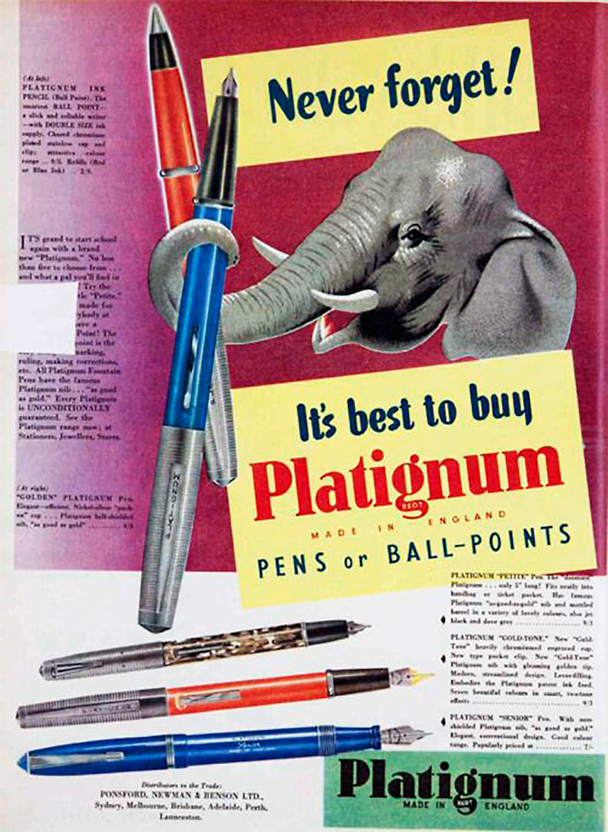 La Platignum aveva introdotto l'acciaio inossidabile per la produzione dei pennini, il loro slogan era "Buono come l'oro".