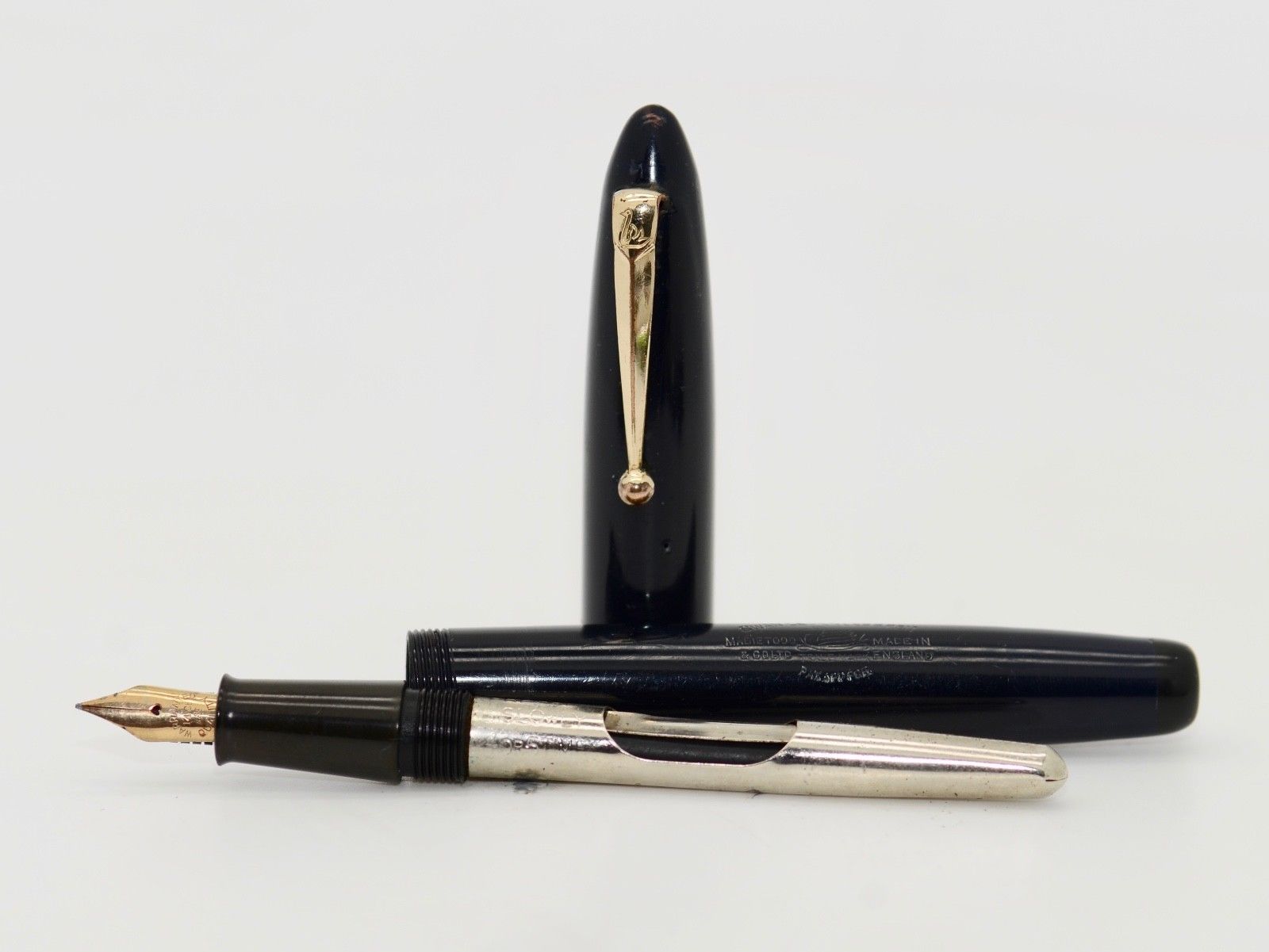 Sul fusto si legge: "Swan Leverless Pen" | "Mabie Todd & Co. LTD" | "Trademark" | "Made in England" | "Pat App For"