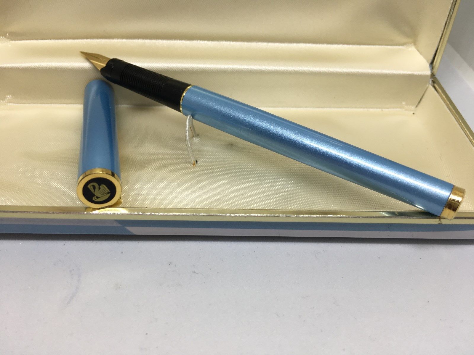 Sono venuto in possesso di una bella penna Pelikan slim (credo anni '80 o '90) azzurra, il mio primo pensiero è stato di crederla una signum ma non ho trovato traccia nel wiki del forum e anche guardando sul sito dei modelli Pelikan tedesco non sono riuscito a venirne a capo in quanto quelle che ci sono sono tutte leggermente diverse sia come forme che come colori.