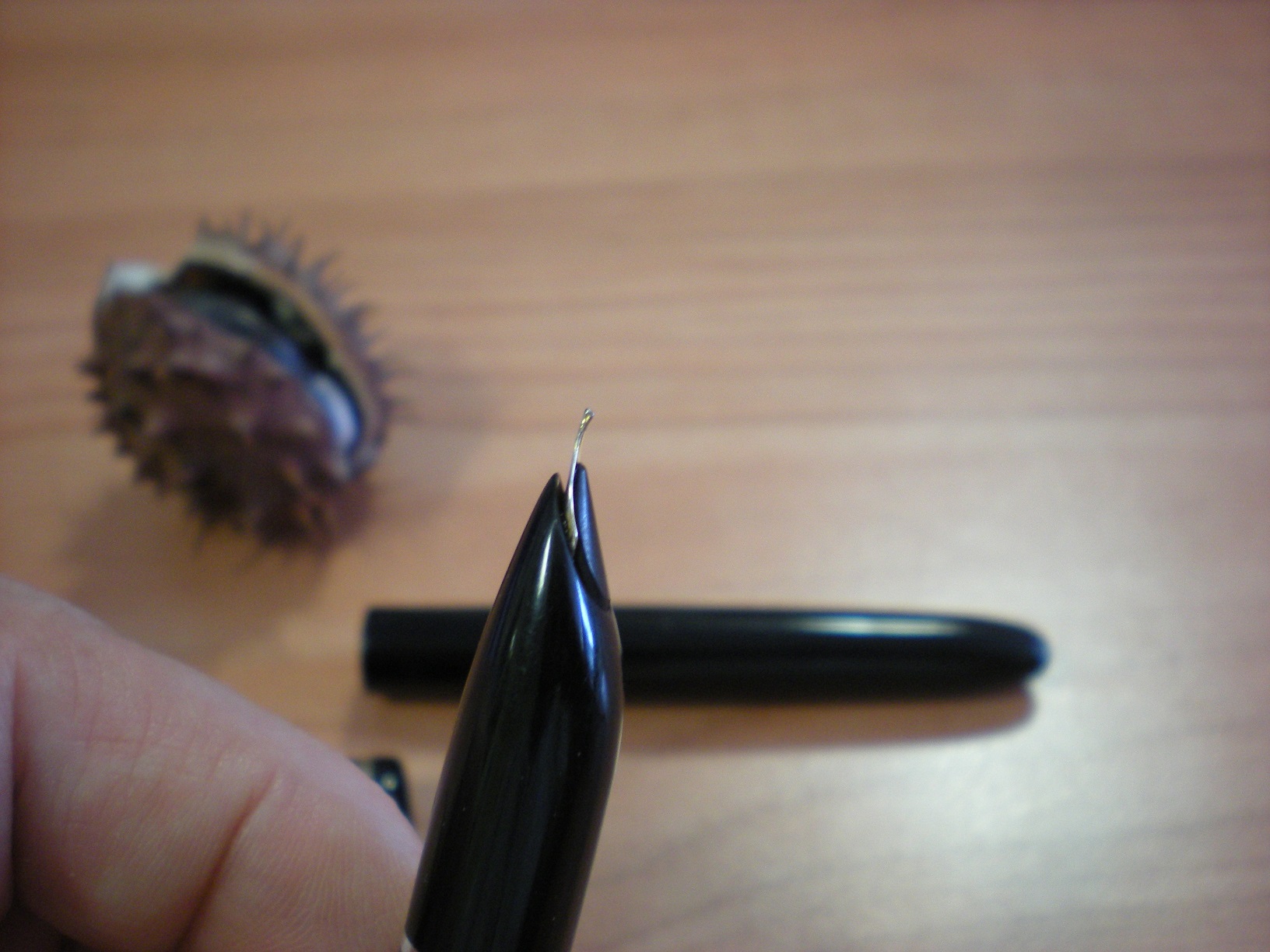 Salve e grazie a tutti, gli indizi sono stati utili perchè mi hanno permesso, con fatica, di completare l'inizio della scritta. In effetti, con una super lente e l'illuminazione giusta,riesco a leggere VIS ma poi più niente. La penna è di tipo economico perchè la punta del pennino è stata ottenuta per stampaggio, non lasciatevi ingannare dal luccichio dovuto alla mancanza della doratura e all'illuminazione utilizzato per fare le foto.