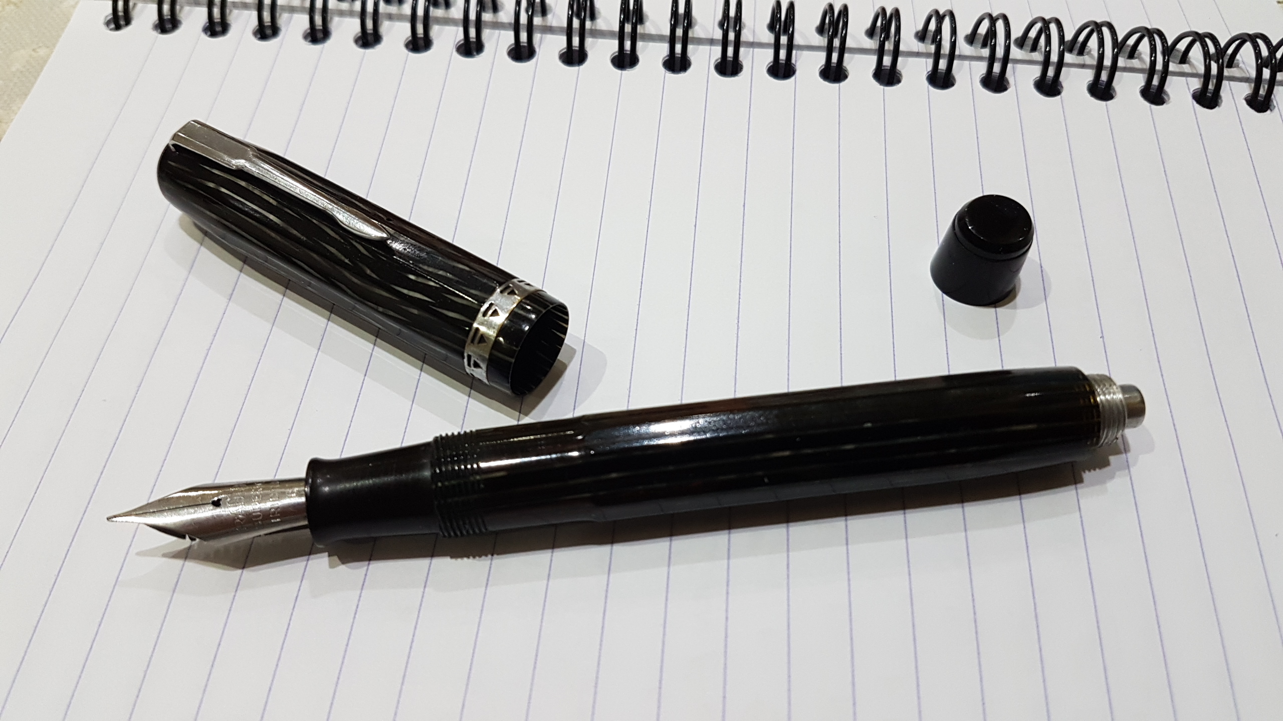 grazie per i link, avevo preso la penna già restaurata e quindi non conoscevo i dettagli interni (e non mi andava di smontare una penna funzionante per scoprirlo). La mia dovrebbe essere la versione autarchica della penna presentata su FPN, quindi la datazione dovrebbe essere corretta.