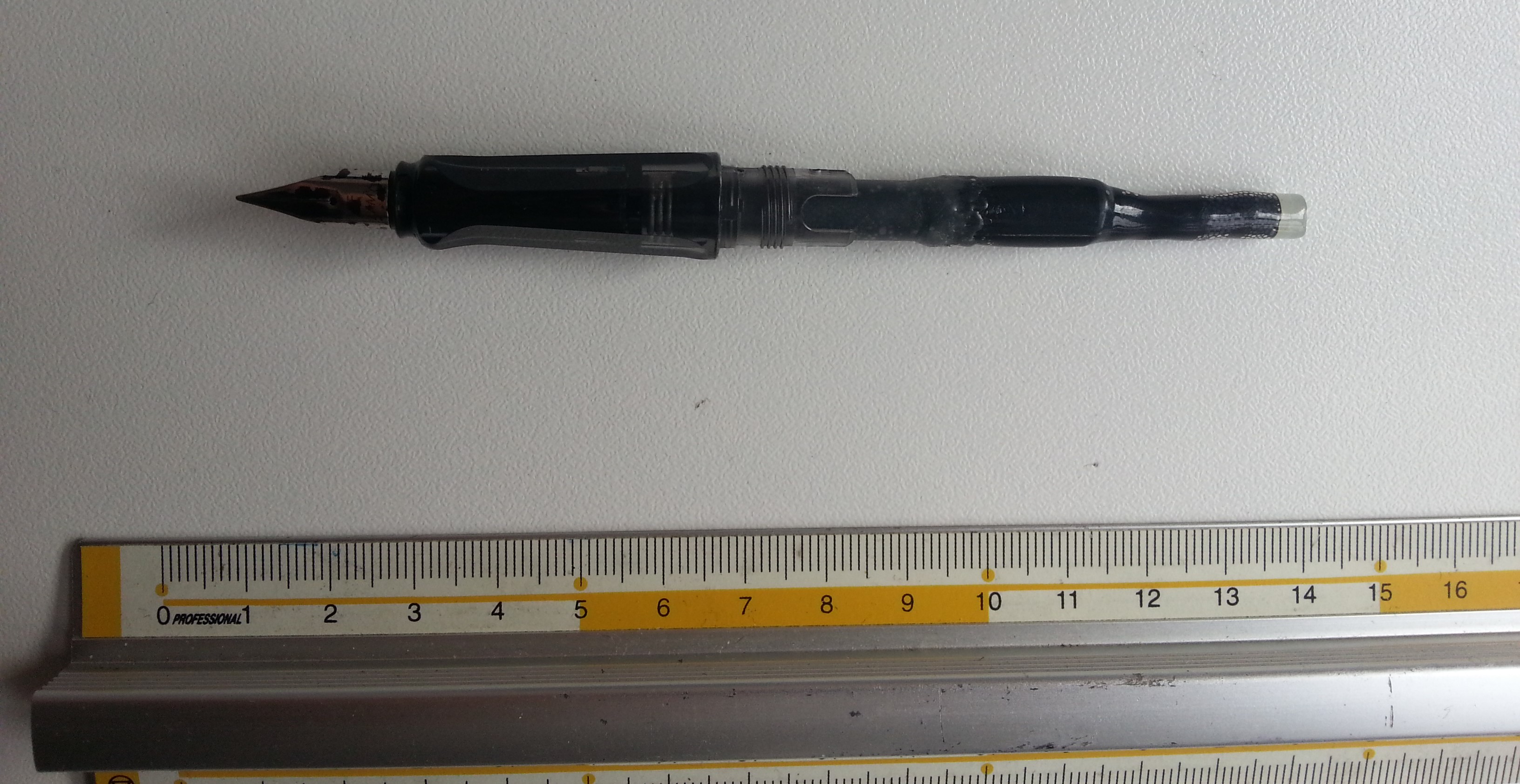 deve essere fatta più volte, facendo molte prove fino ad ottenere un pezzo di tubo che possa entrare nella parte superiore del copro della penna, quella adibita alla parte da ruotare del converter a vite originale. In questa maniera si riesce a sfruttare "ogni angolo" del fusto, a seconda di quanto bravi siete stati a deformare la pipetta.