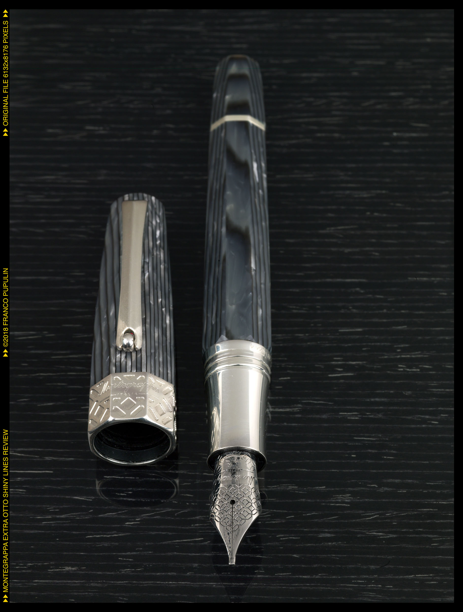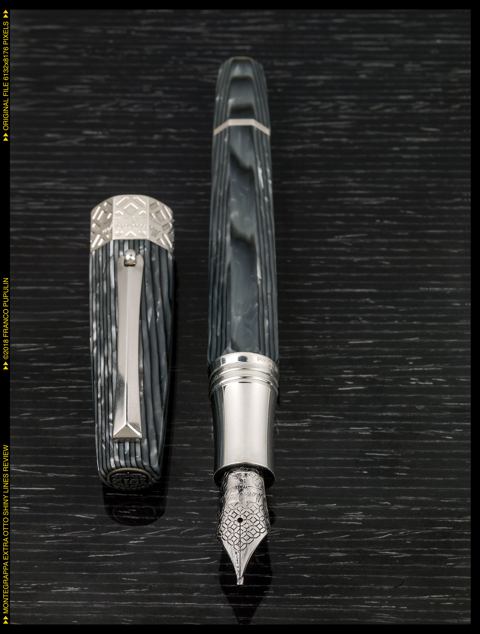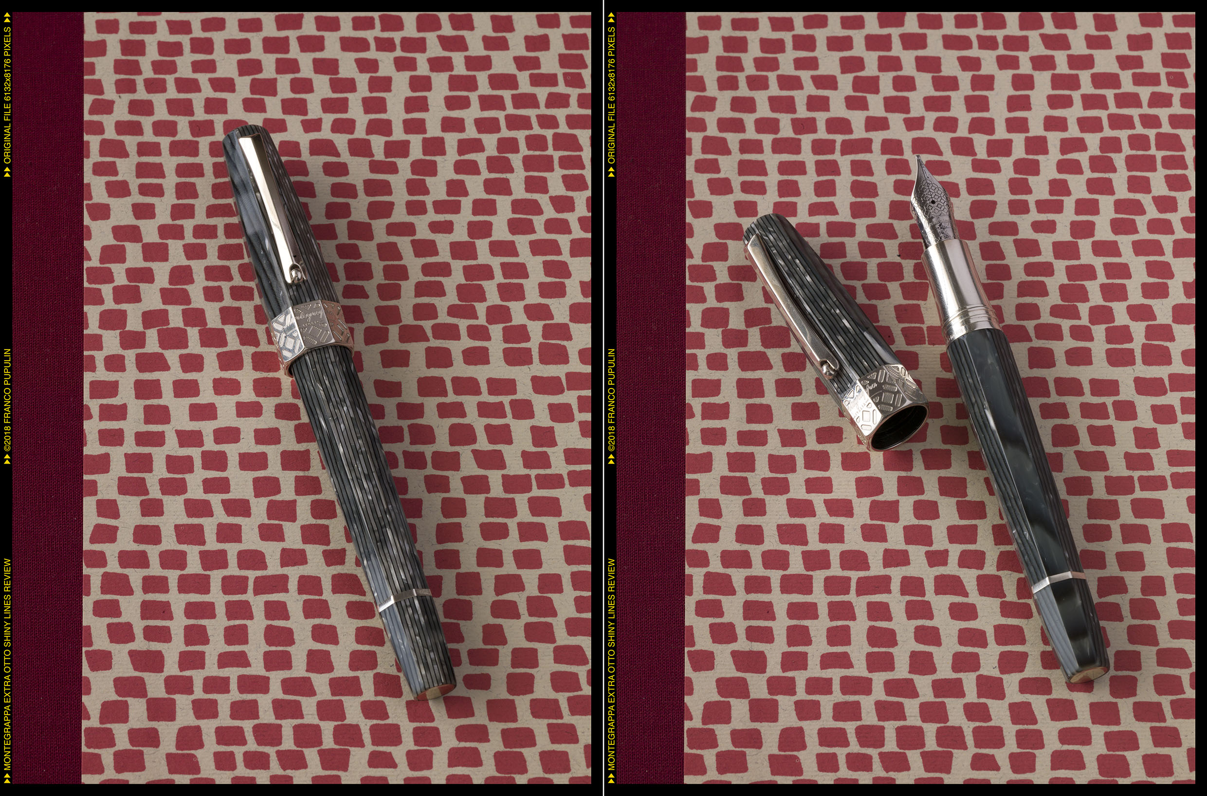 Ed ora, la penna. Come dice il suo nome, Otto, il corpo della penna è ottagonale. La sezione ottagonale non è nuova per Montegrappa, ma rappresenta piuttosto uno stilema classico della casa di Bassano, una forma geometrica introdotta già per lo meno dagli anni 30 del secolo scorso. Chi sia interessato a una rassegna storica approfondita delle linee ottagonali di Montegrappa può consultare su fountainpennetwork l’eccellente lavoro di Jar a questo indirizzo web: http://www.fountainpennetwork.com/forum ... tion-pens/, oppure la pagina personale di Jar dedicata al tema: http://montegrappa-history.com