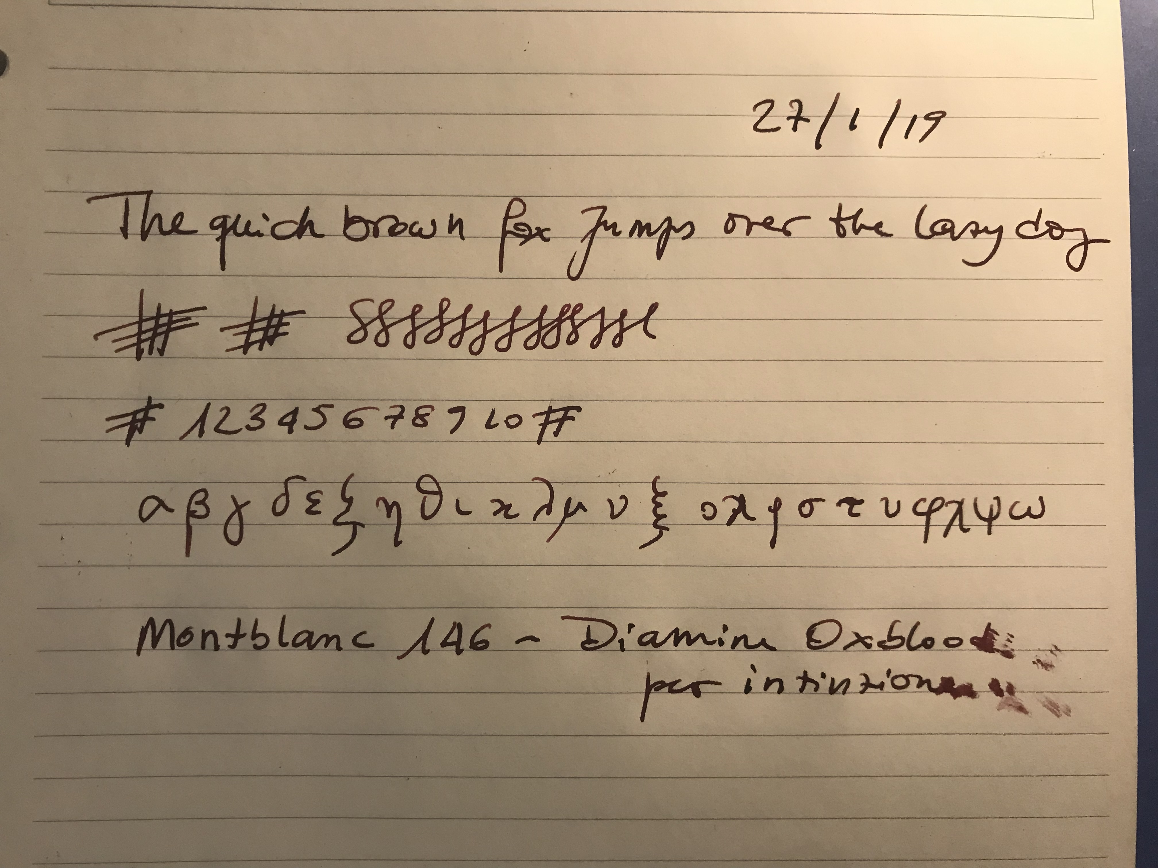 Ho provato a scrivere con un Diamine Oxblood per intinzione (scusate la pessima grafia, assolutamente da medico quale sono :angel: ) e questo e' il risultato.