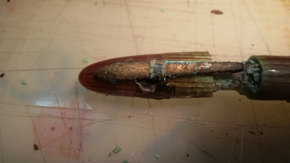 Ma cosa è successo? A giudicare dalla bronzatura del pennino direi intenso calore...