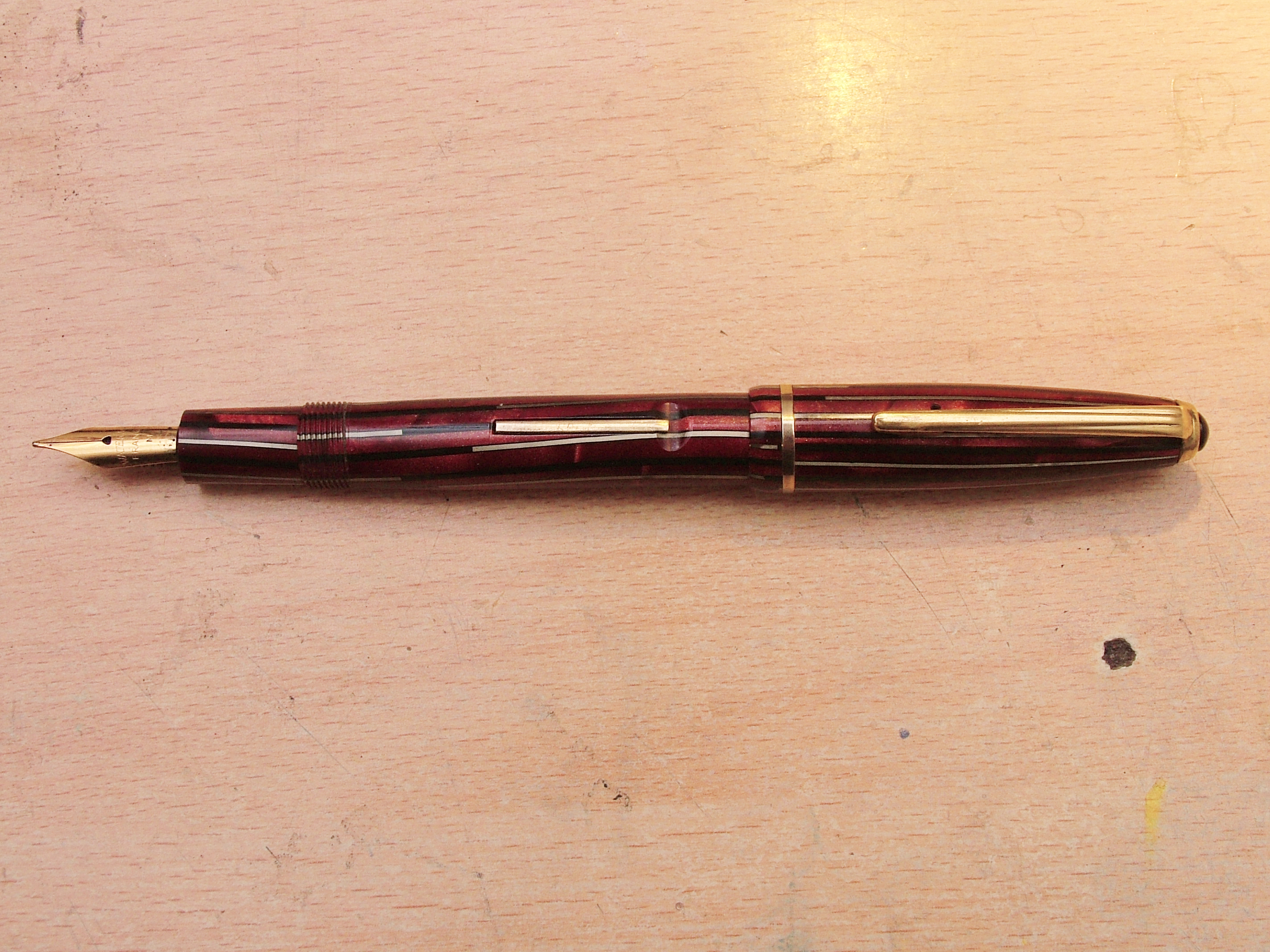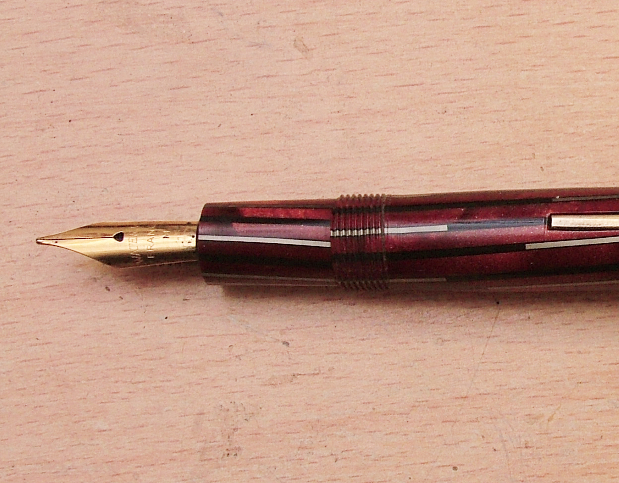 Il pennino originale non c'era , quello della foto era un Waterman, ma non andava come dicevo io, la parte finale era troppo larga e faceva le bizze, l'ho sostituito con un Norex degli anni 60 che parrebbe andare bene.
