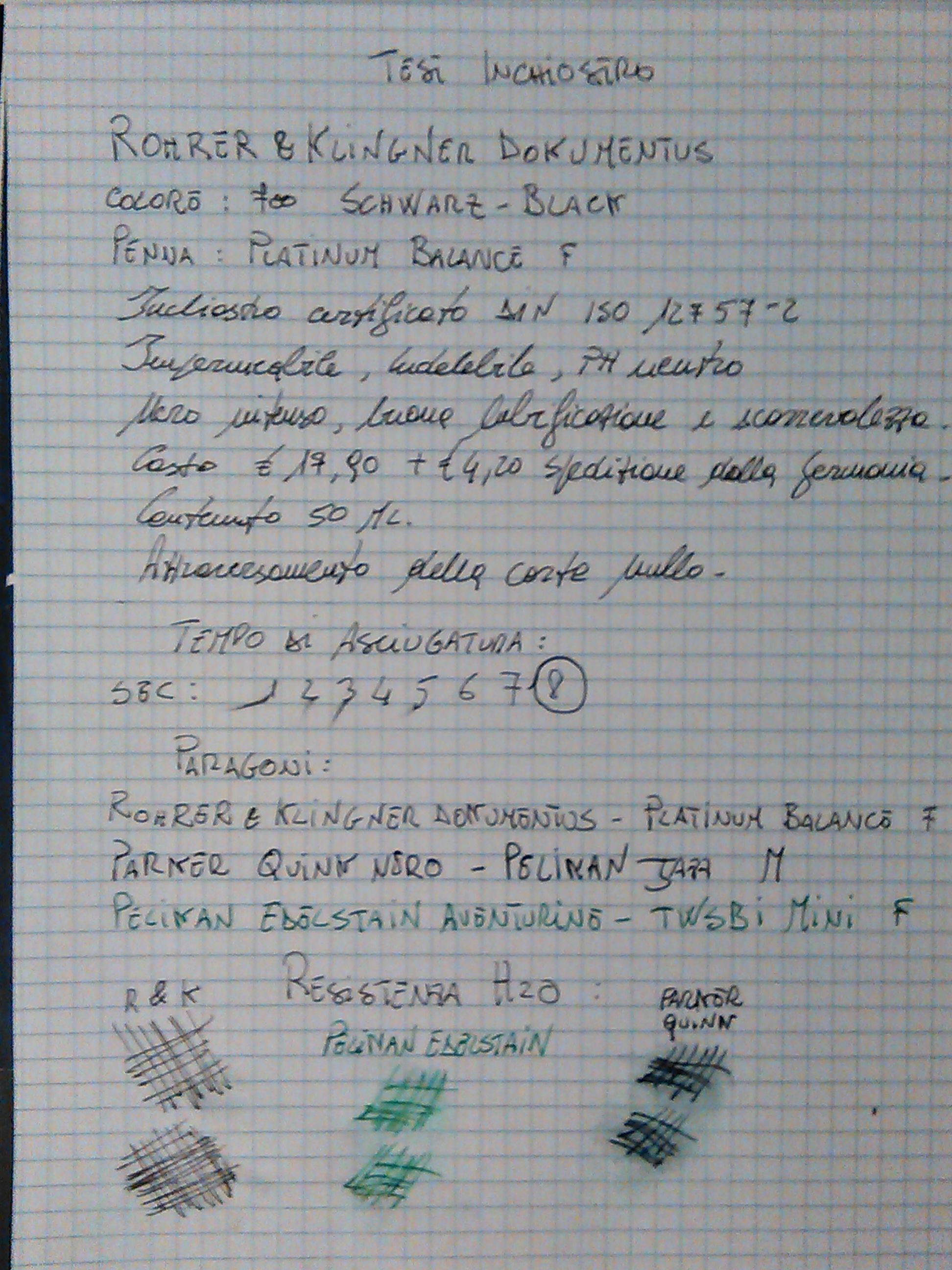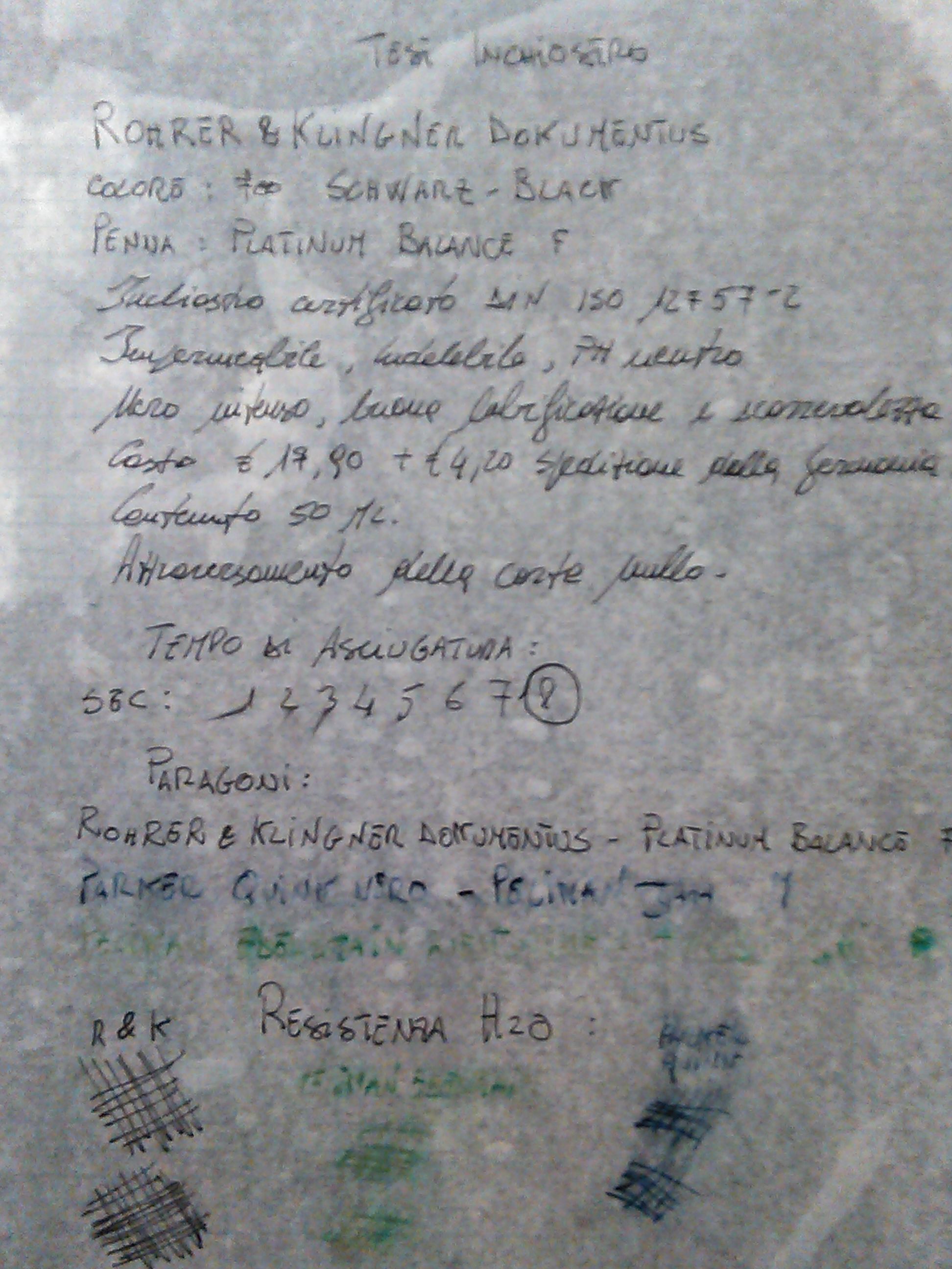 Inserisco questa mia recensione su un inchiostro dichiarato per documenti, indelebile, resistente all'acqua e certificato DIN ISO 12757-2.