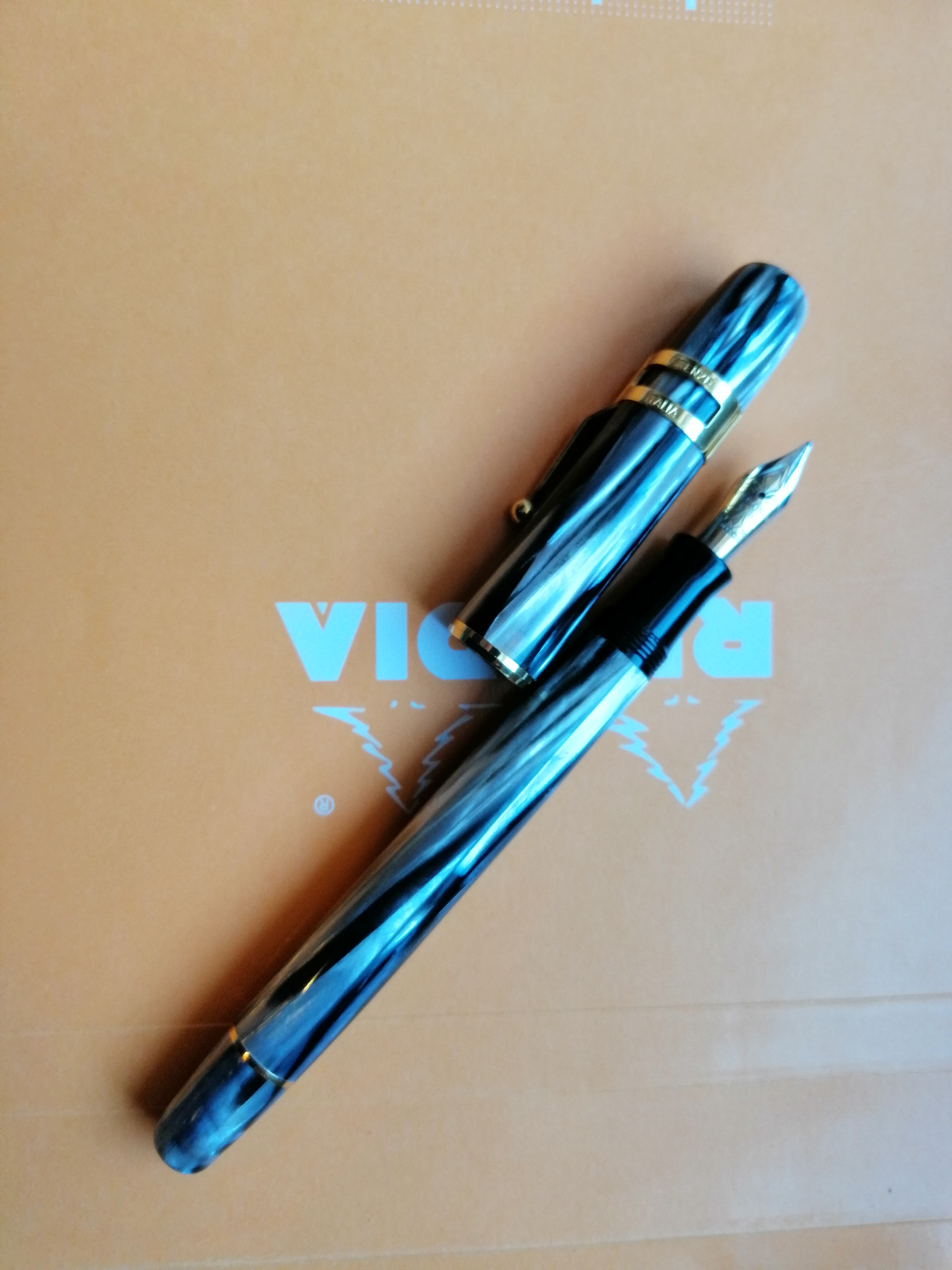 È parecchio che non scrivo o intervengo sul forum ma vi volevo presentare il mio ultimo acquisto, una Visconti Ragtime in celluloide, prima versione del 91, di cui sono molto soddisfatto. Il pennino è un 14k bicolore ma la penna venne prodotta anche con pennini acciaio sempre bicolore. Una cosa interessante è che la penna venne disegnata con Kiyoshi Kato che, leggendo in giro, sarebbe stato un personaggio molto noto nel campo della stilografica in Giappone. La penna peraltro scrive molto bene. In allegato un paio di foto al volo con il cell.