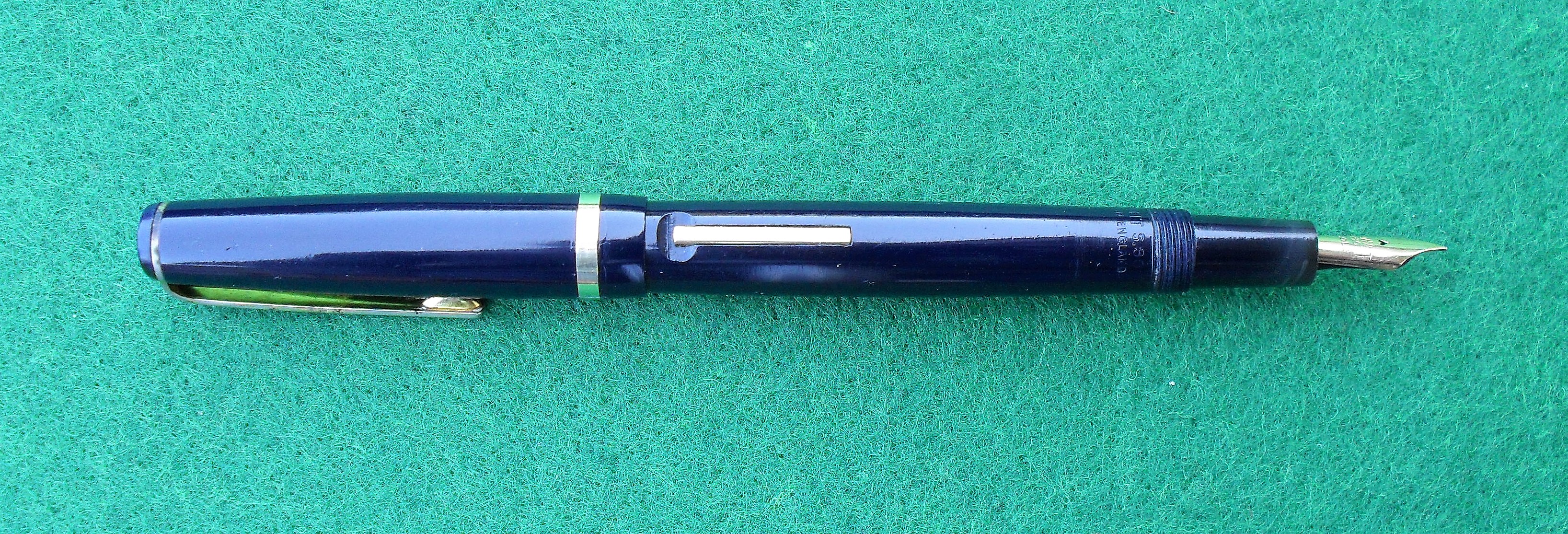 - Materiale: celluloide, con pennino d’oro a 14 carati; leva d’alimentazione e fermaglio in lega metallica dorata, alimentatore in ebanite.
