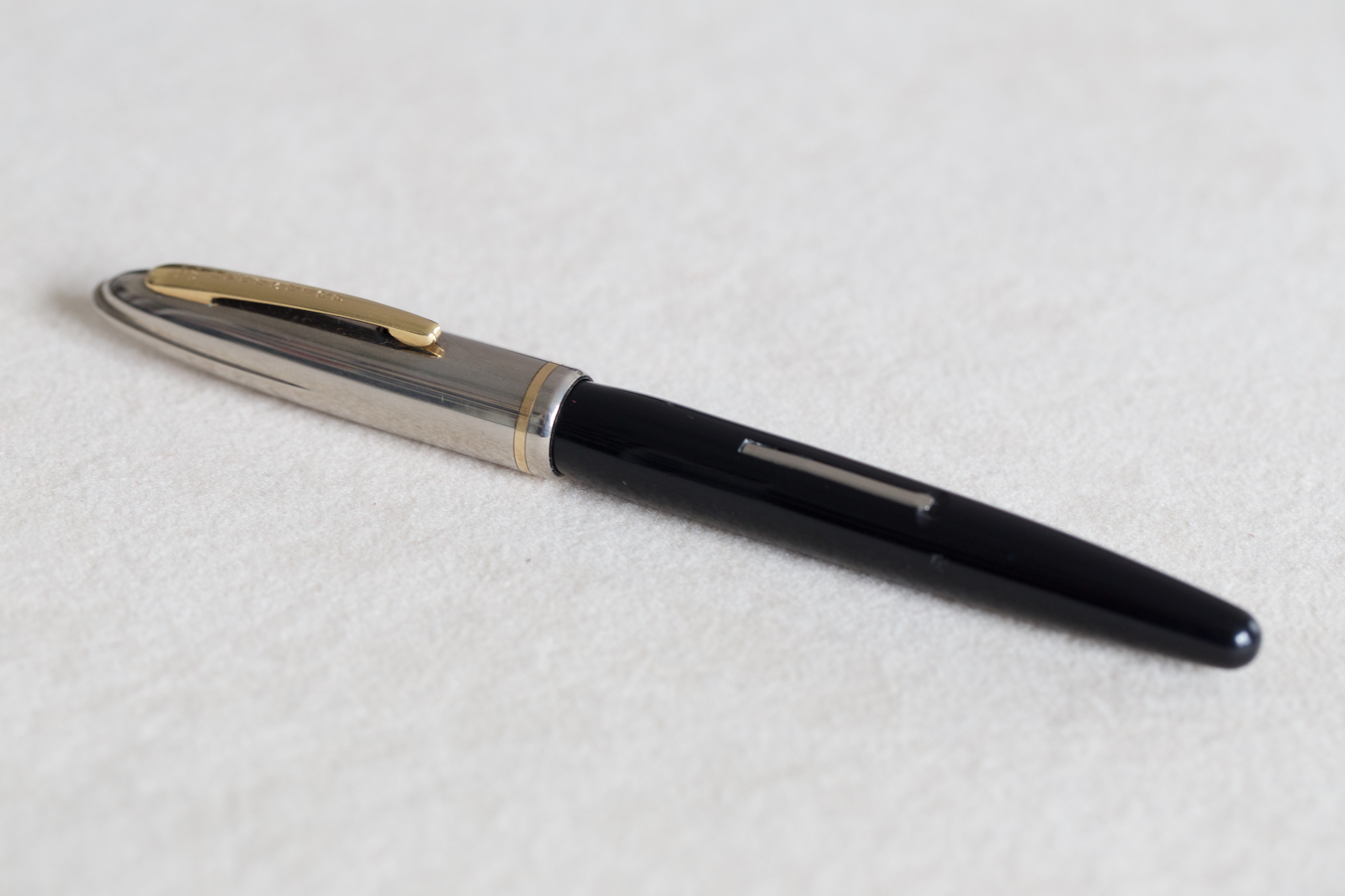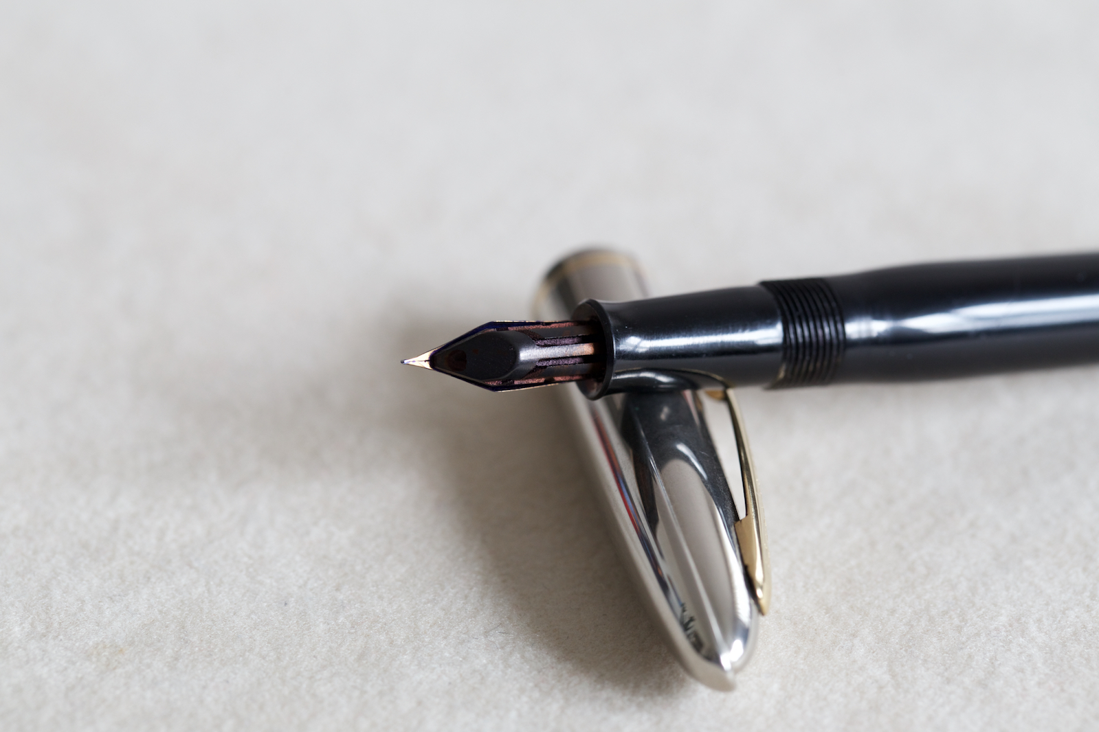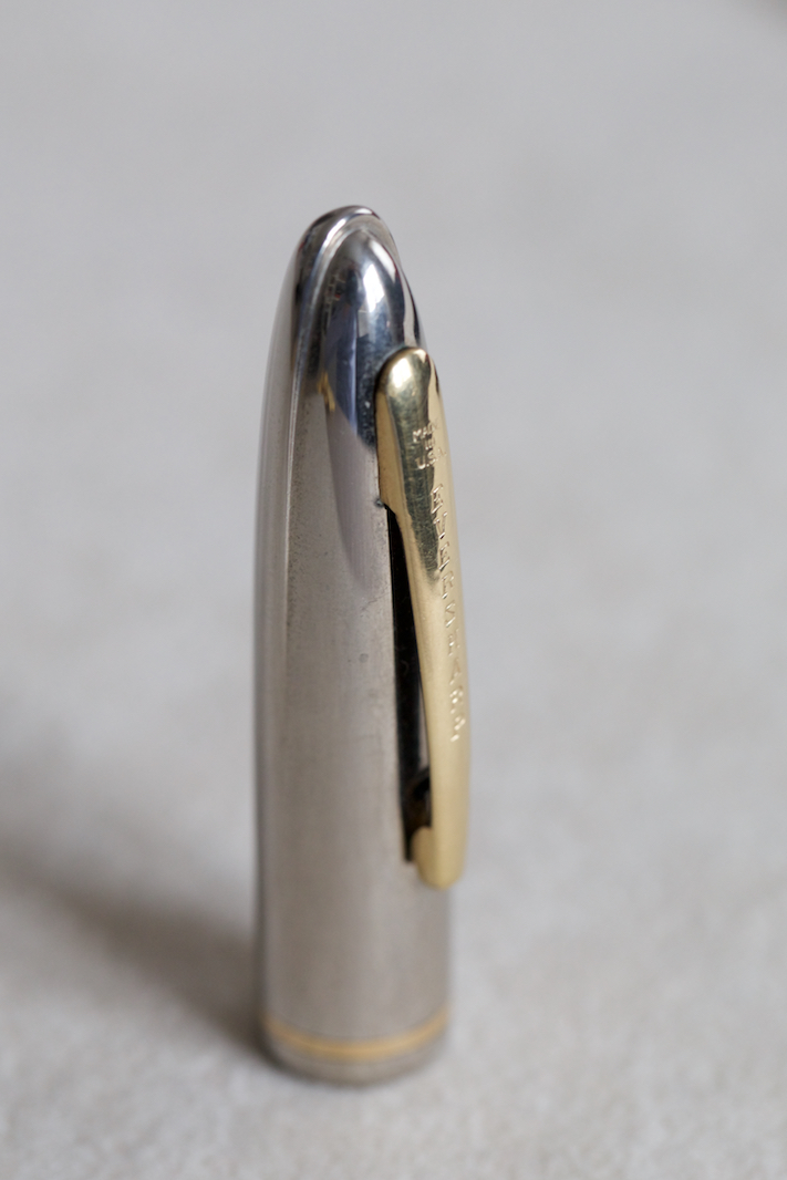 Le Symphony non ebbero successo, anche per il caricamento "arretrato" rispetto ai tempi, ma tutte hanno una qualità di scrittura favolosa. La tua è la seconda serie, che mantiene quel cappuccio particolarissimo progettato Raymond Loewy ma ha la filettatura sul corpo. Il numero comunque mi sfugge completamente, alcune avevano un numero di modello, ma non era stampigliato e non c'entra nulla con quello mostrato. Un piccolo mistero.