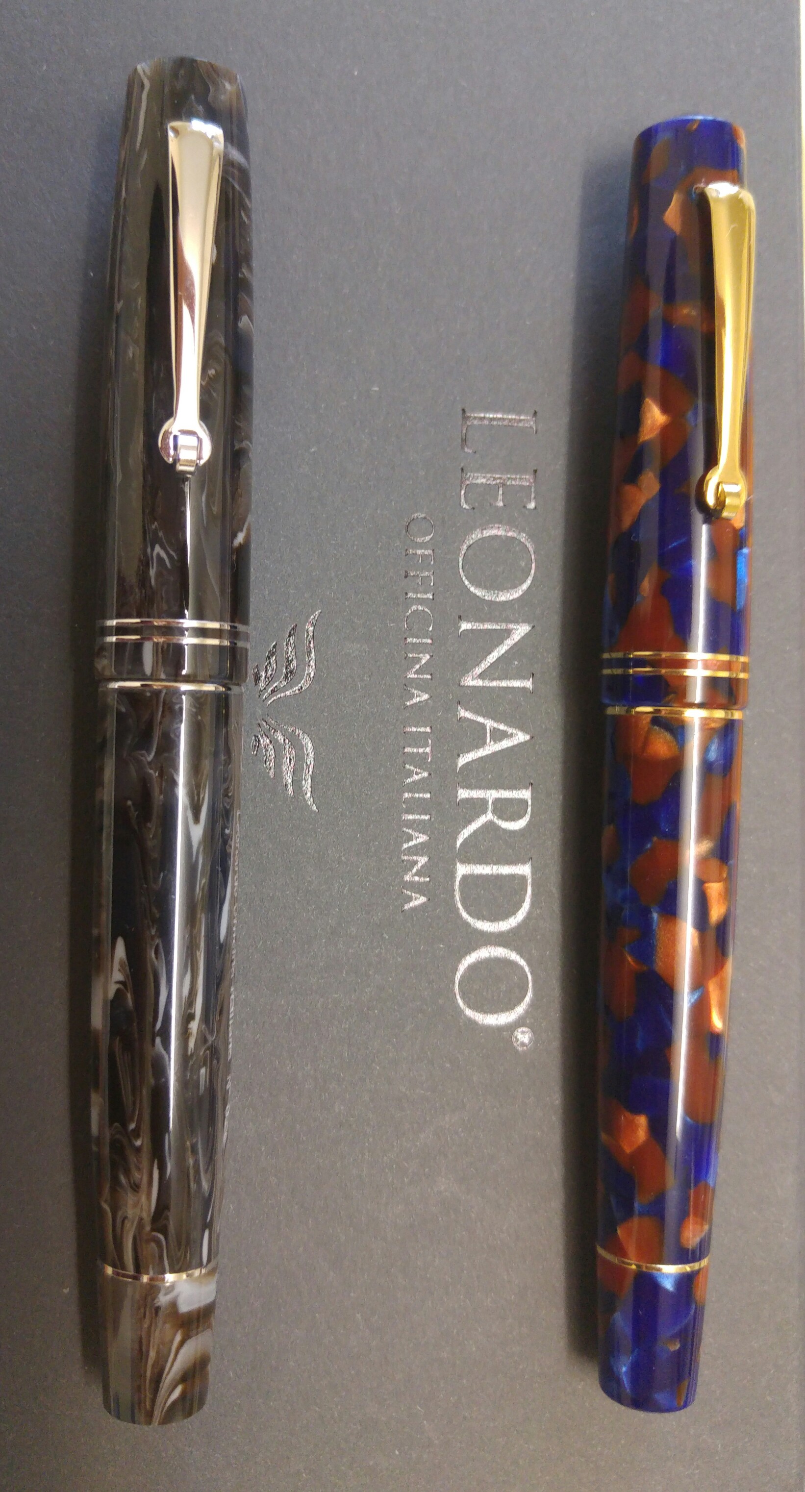 due Leonardo con finiture dorate e pennini M