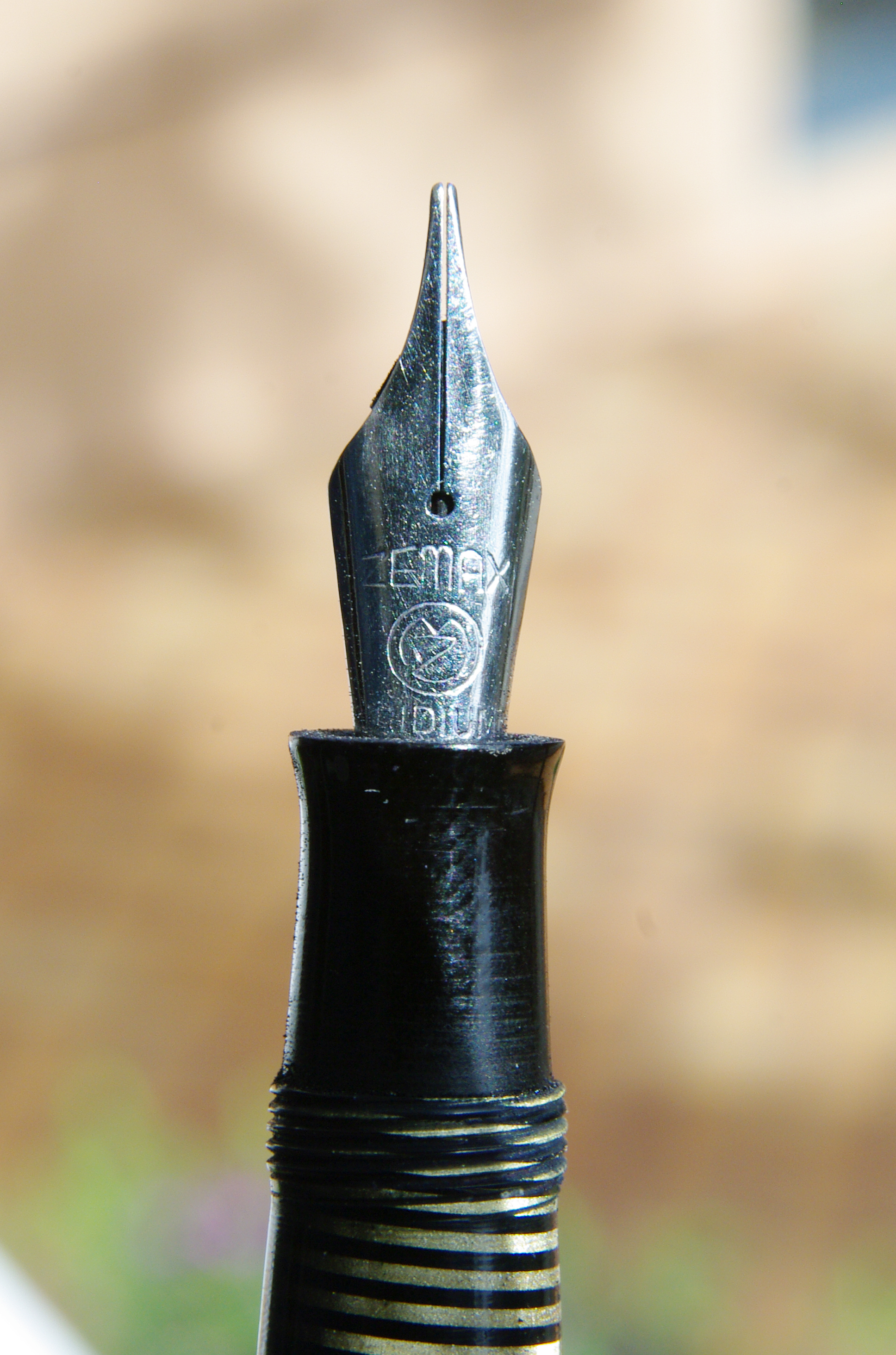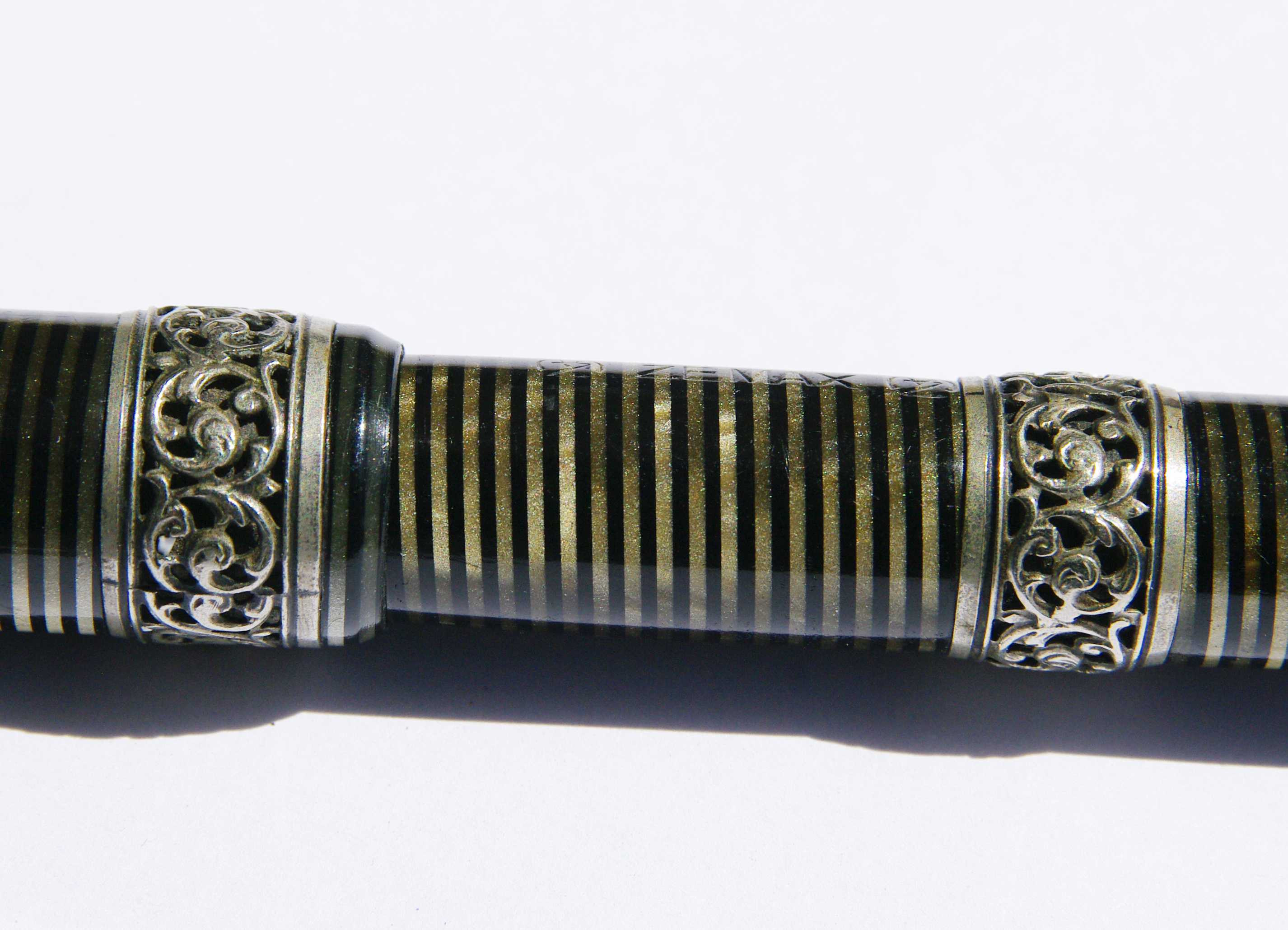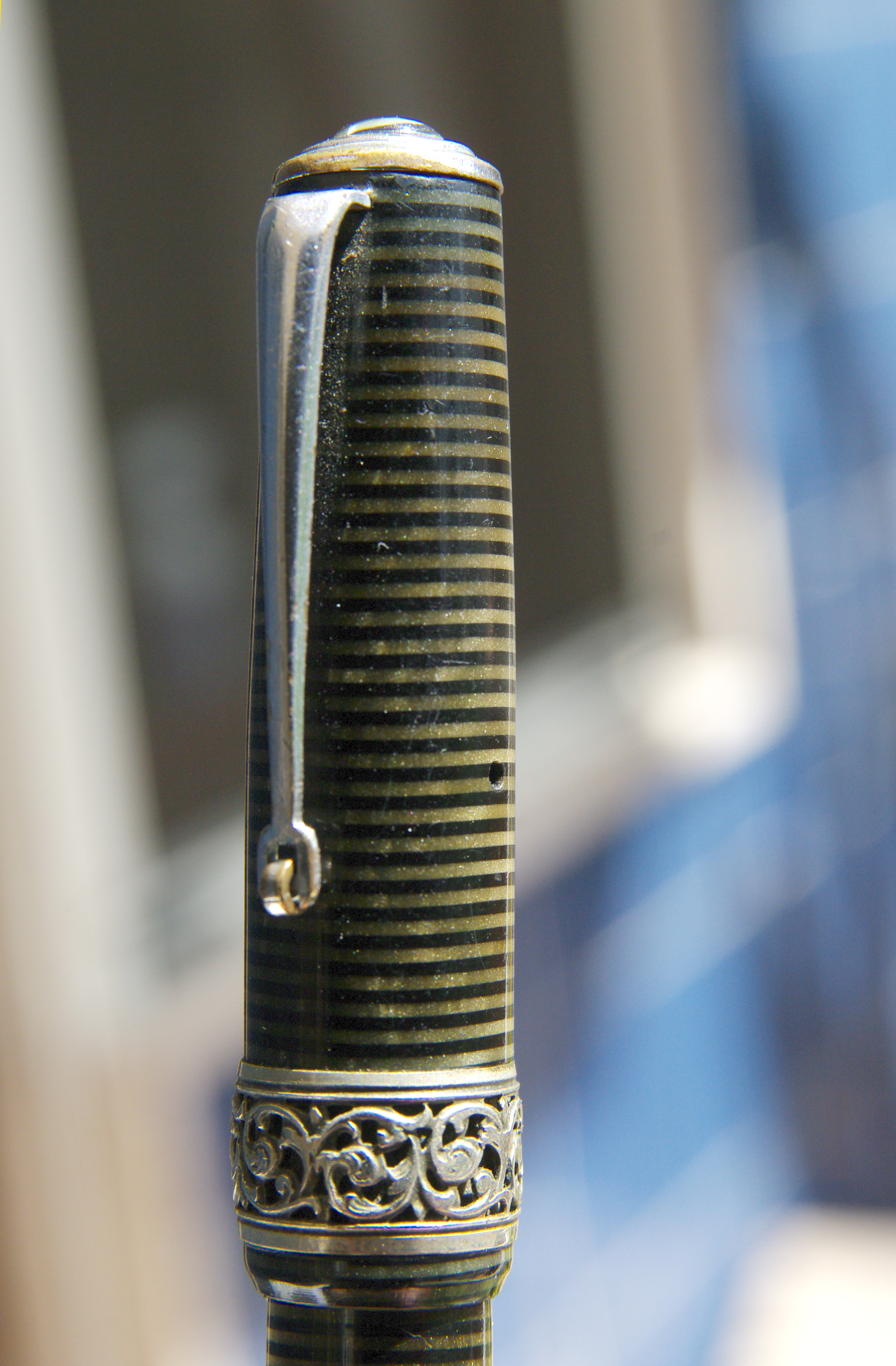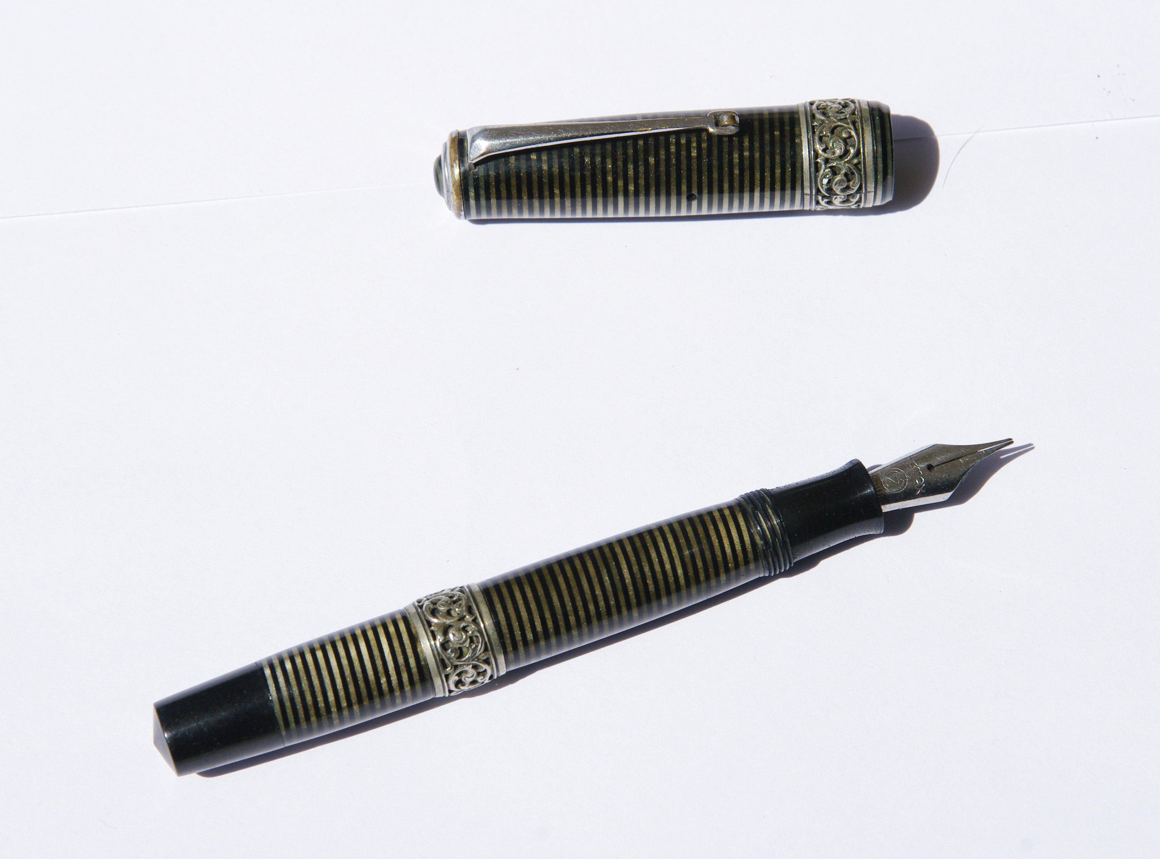 Vedo che il tuo interesse per le Zemax non diminuisce minimamente! Questa è davvero particolare, di penne in celluloide con le bande traforate sul corpo credo sia la prima che vedo (ma Zeme di penne "strane" ne ha fatte diverse).