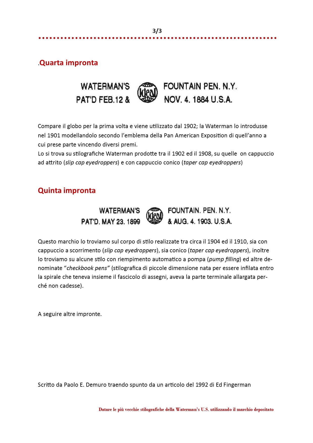 Un aiuto per datare le più vecchie stilografiche della Waterman’s U.S., utilizzando le scritte impresse