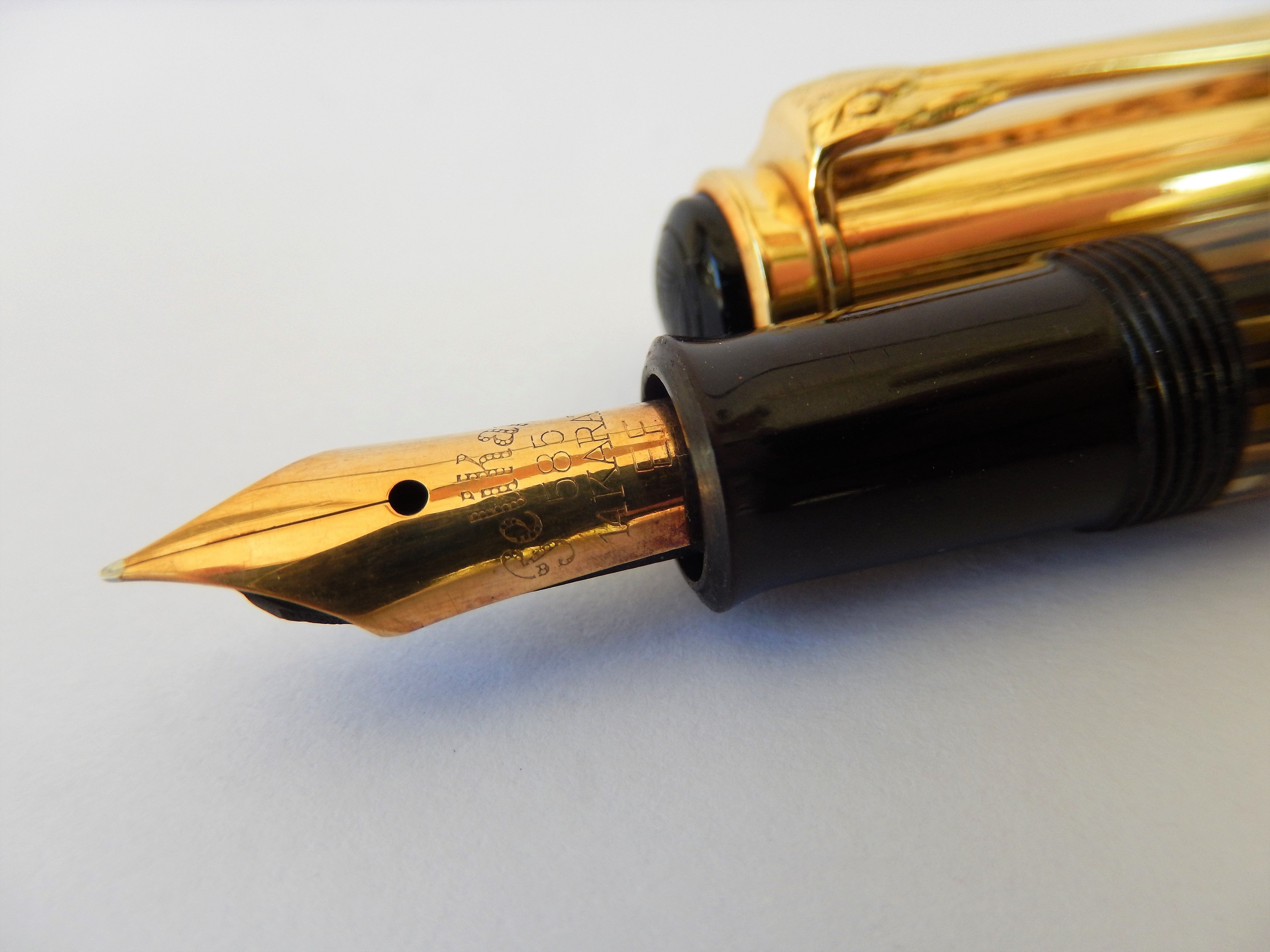 La penna monta un pennino ante 1954, è infatti privo del logo circolare e della decorazione cosidetta ad abete, ma esibisce l'indicazione della larghezza, nel caso specifico un E.F.. Come tutti i pennini Pelikan di quegli anni è un vero piacere per lo scrivere, adeguatamente flessibile e