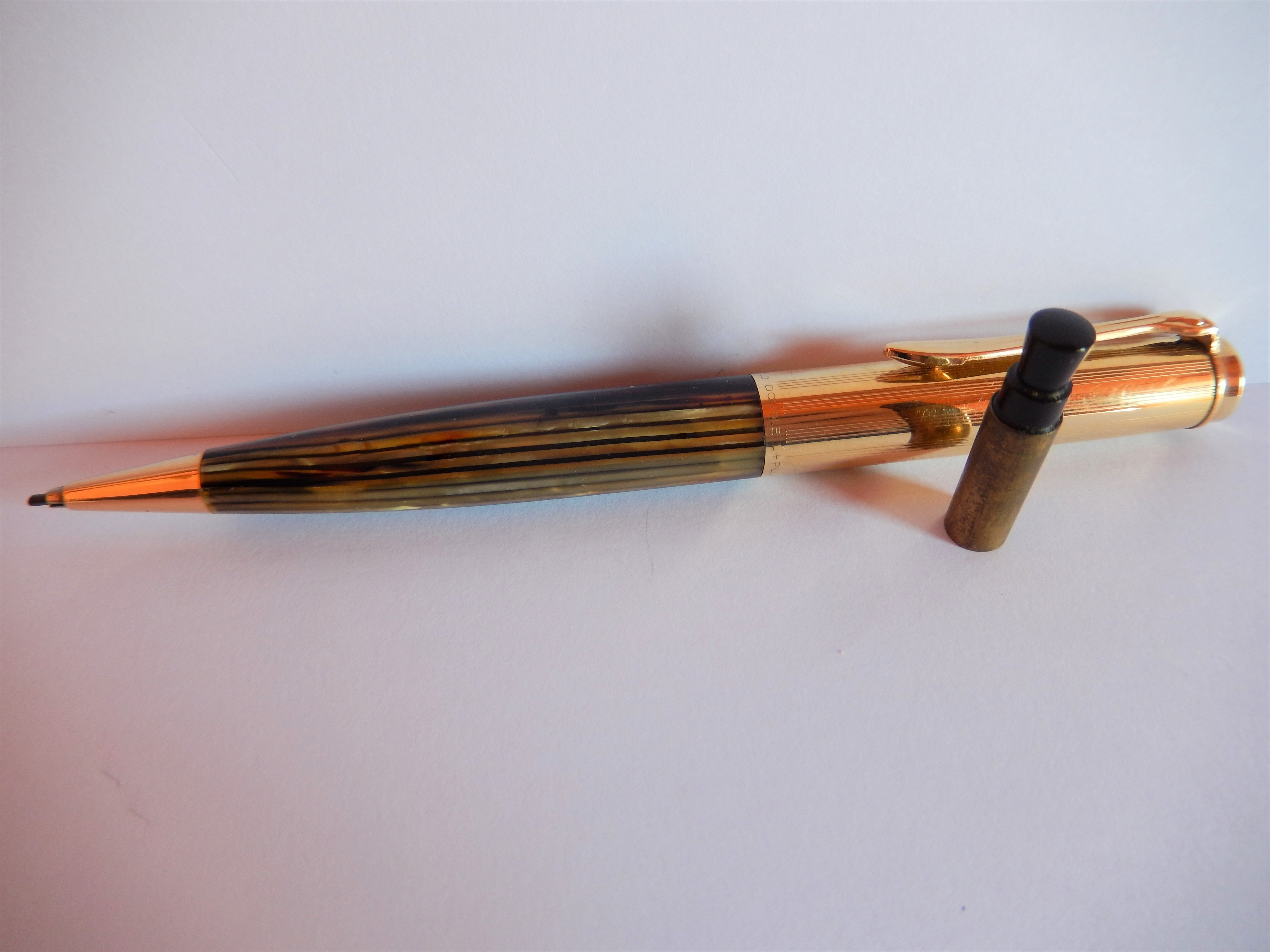 La matita, una 550, è lunga 12,8 cm , come segnala il catalogo del 1953, mentre il catalogo del 1955 indica una lunghezza di 13,1. Sul labbro del cappuccio riporta " Pelikan Germany rolled gold double L, con double scritto stavolta senza accento.