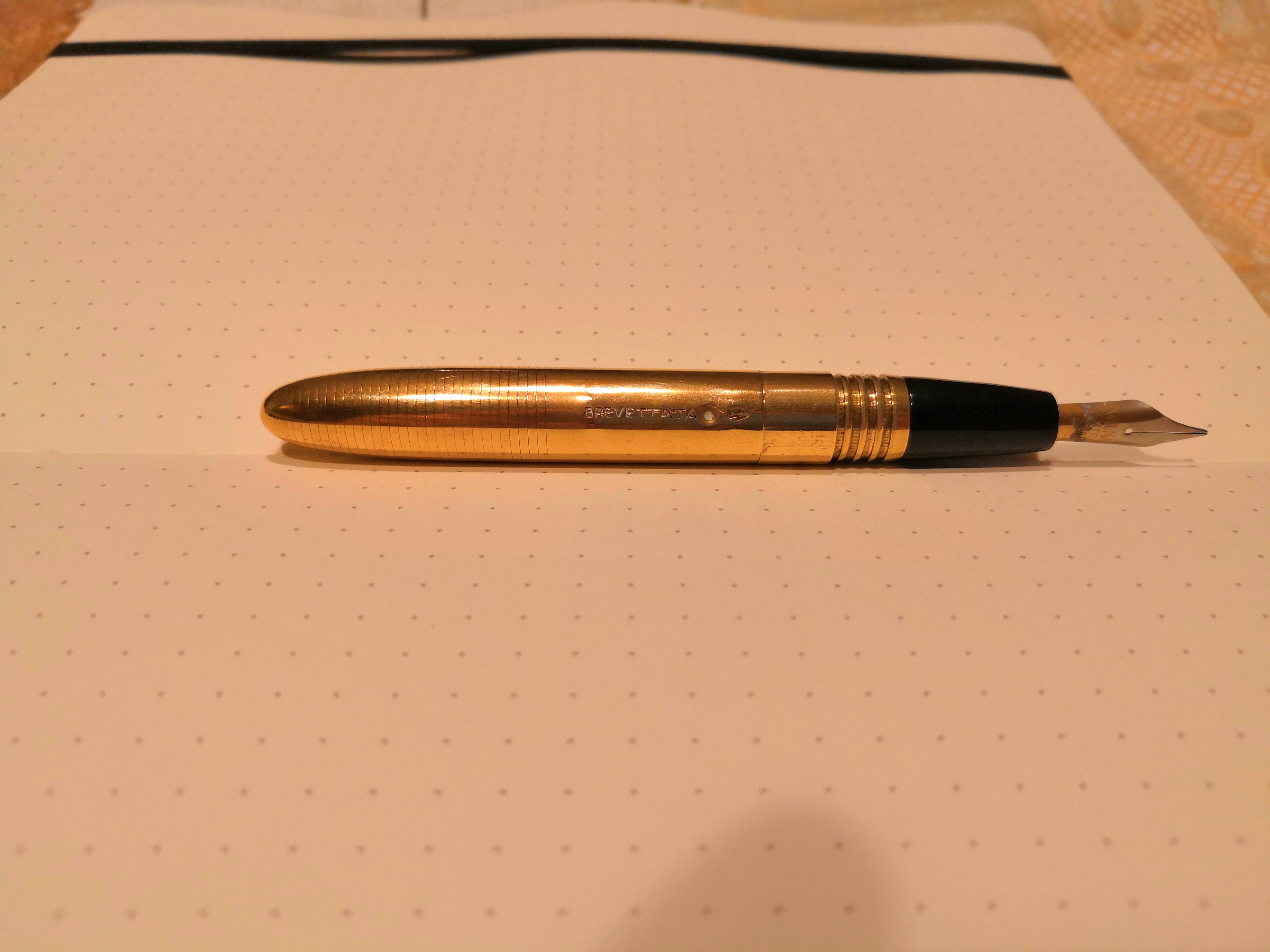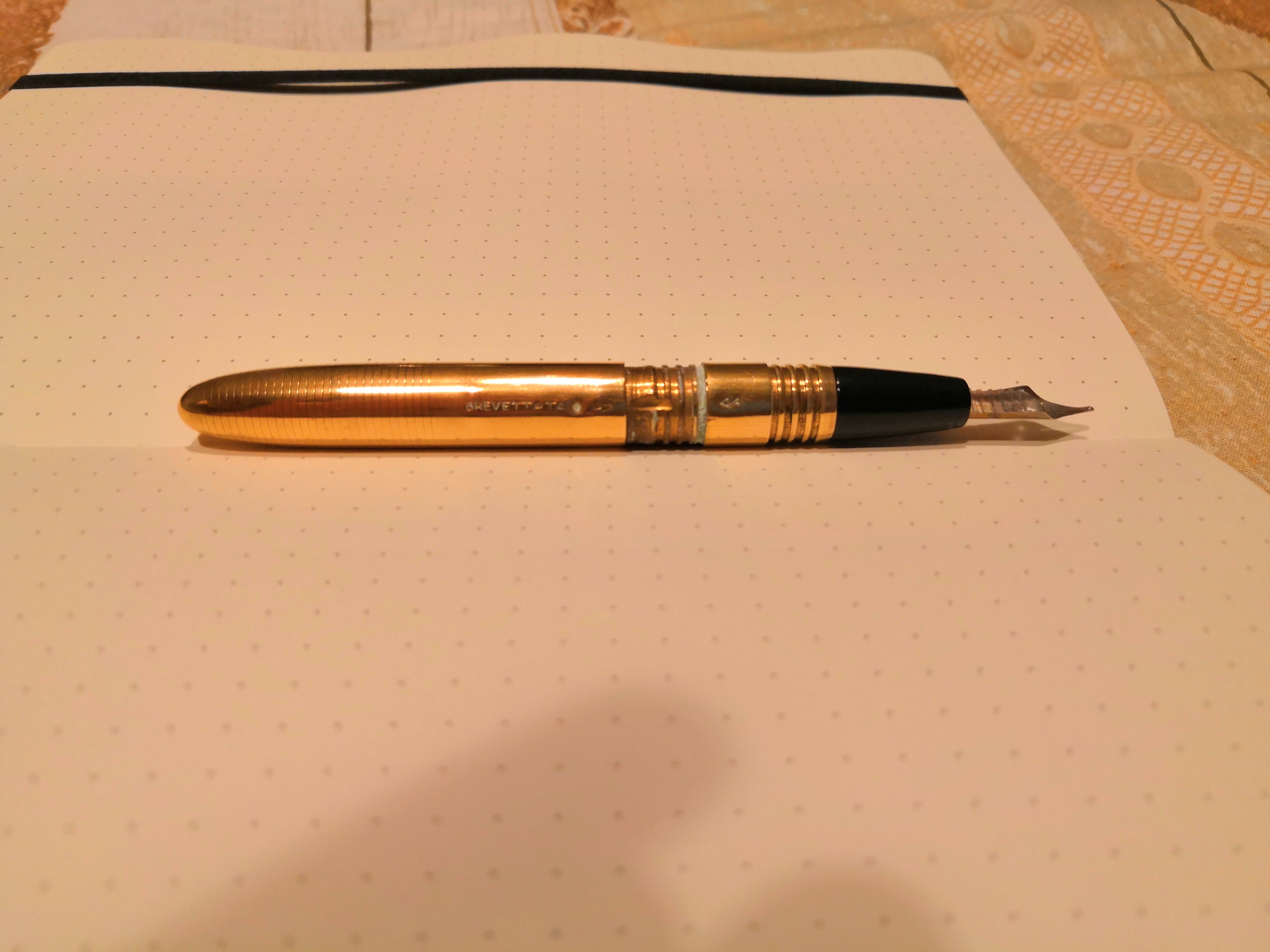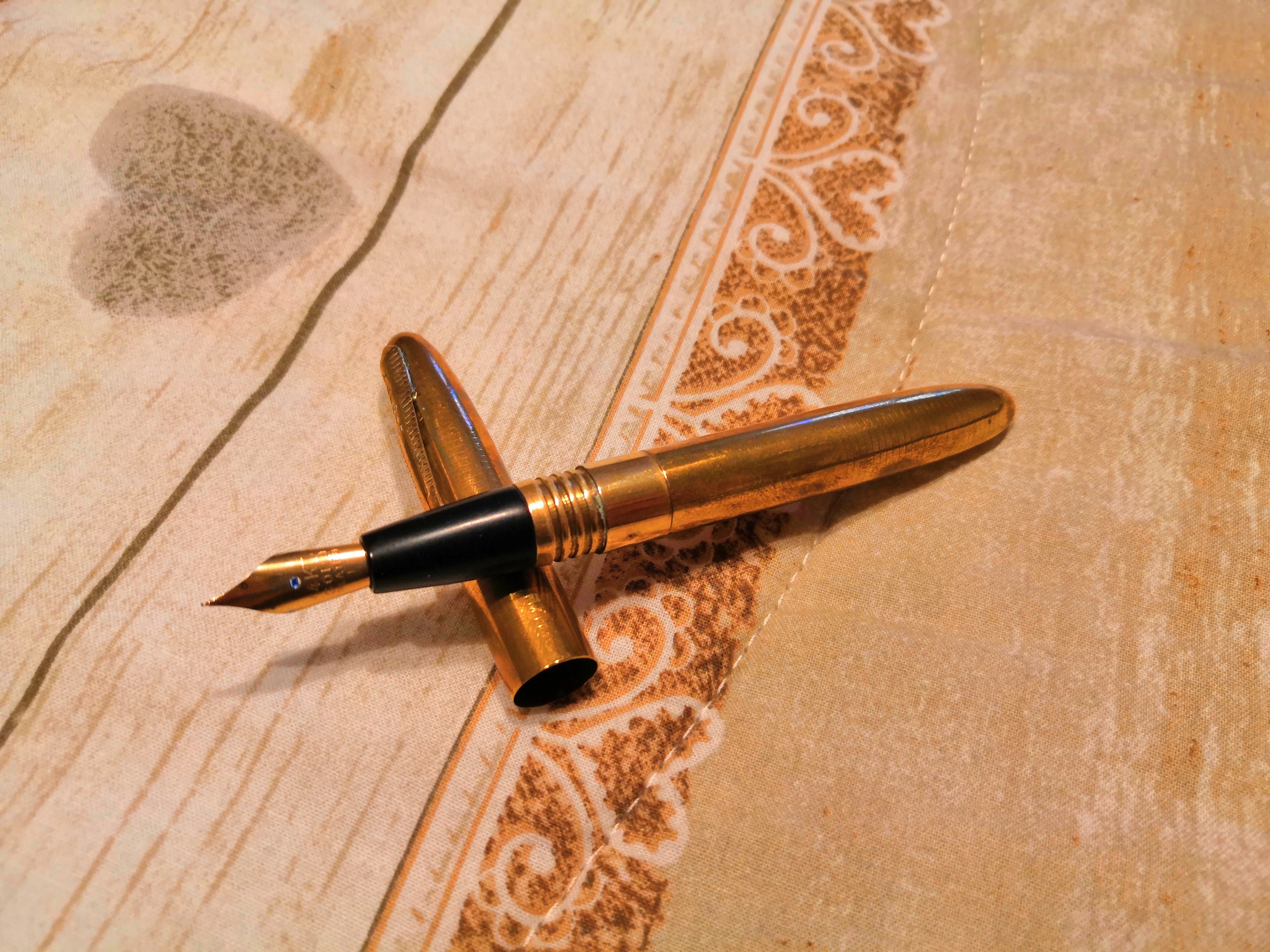 Terminato il riassemblaggio di questa penna! Per il momento continuo con il rudimentale sacchetto autocostruito (tra un po' acquisterò qualche sacchetto di silicone ;)) mentre, grazie alla disponibilità e gentilezza di maxpop 55, ho un pennino fiammante 14 kt F che va una meraviglia!
