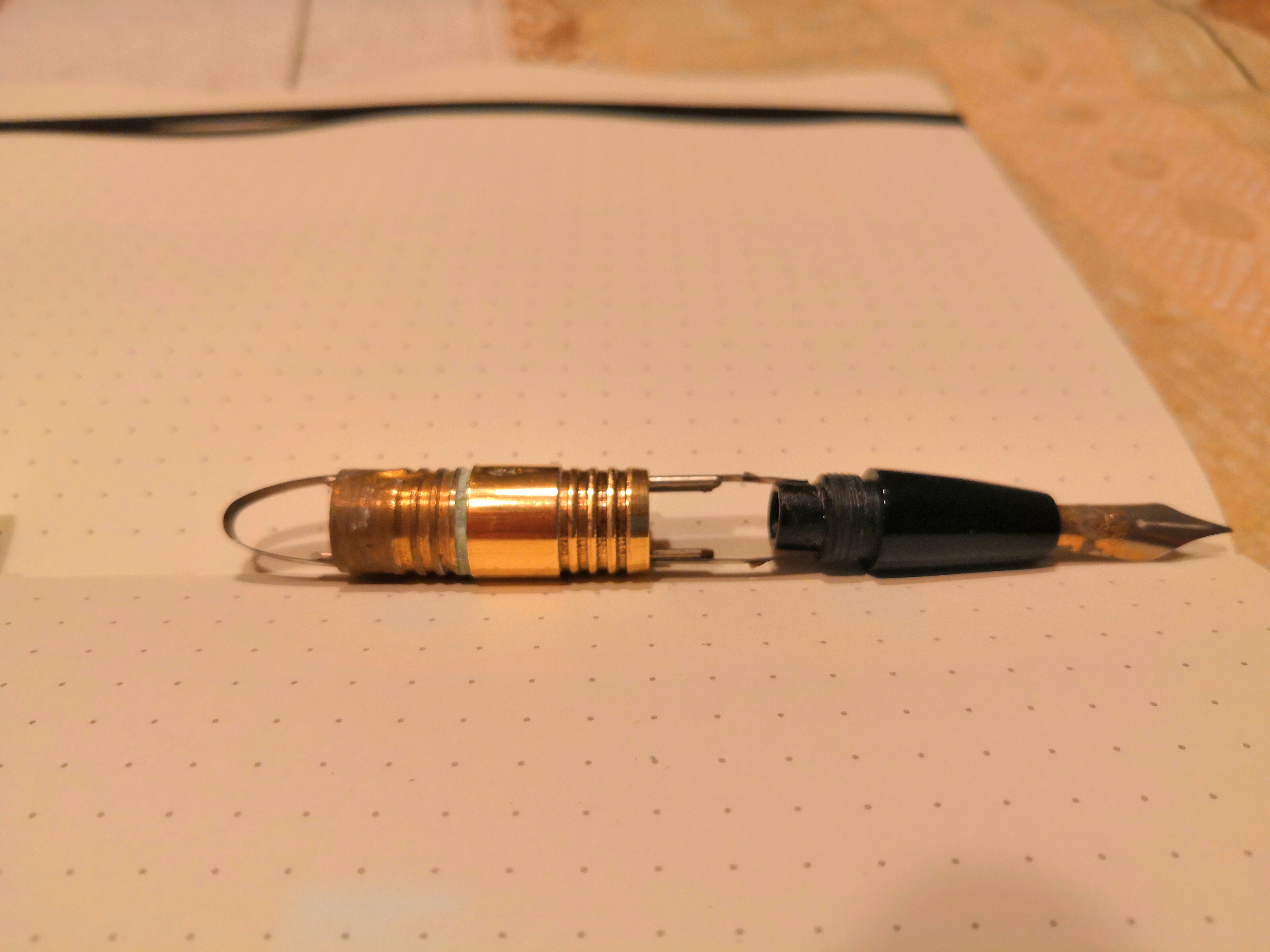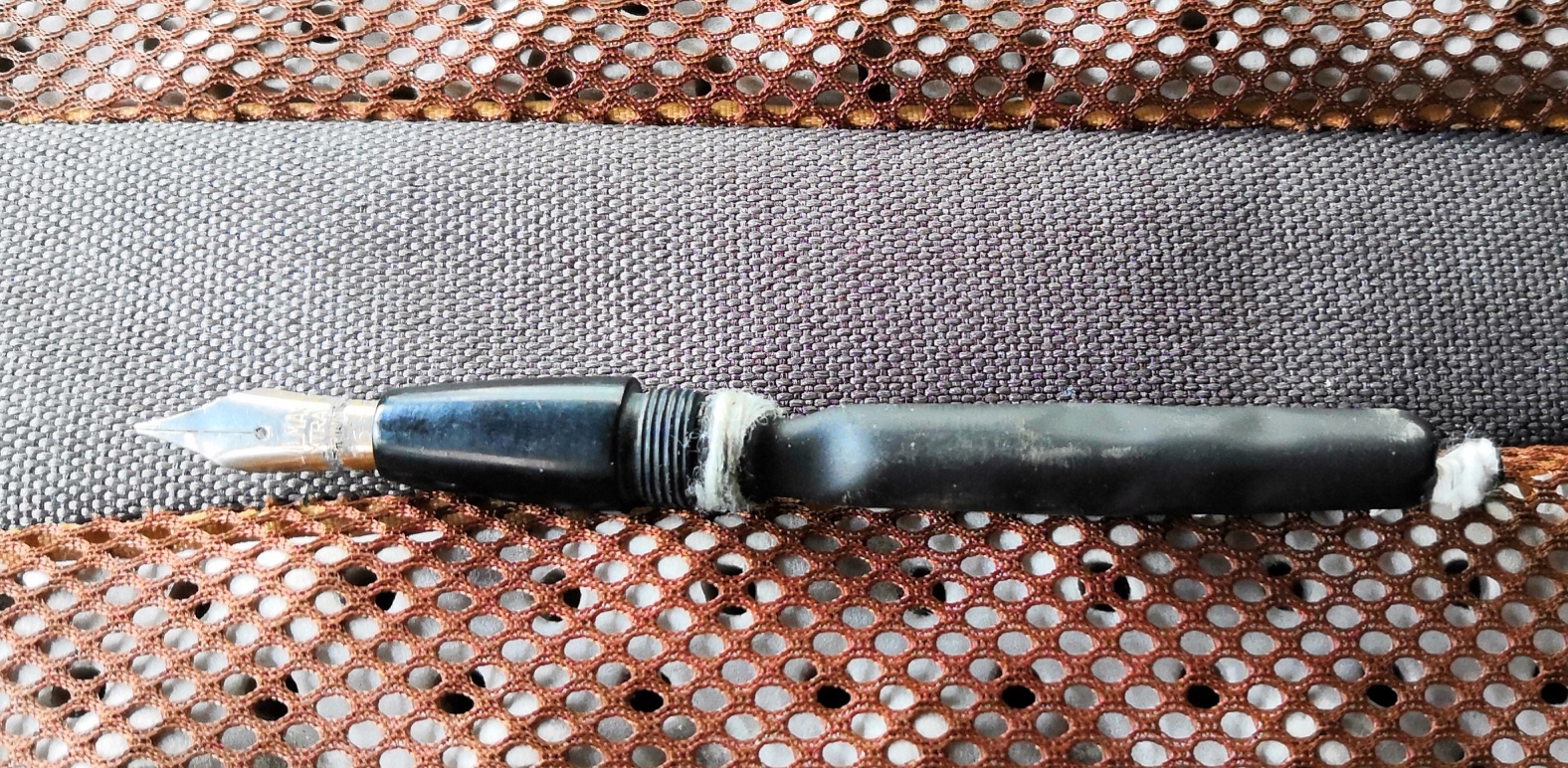 Ieri sera, mentre guardavo come potermi costruire un sacchetto di gomma in casa (e oggi voglio provarci) ho scoperto che il corpo è composto da due parti. In pratica erano inchiodate insieme e a furia di rimaneggiare la penna si sono schiodate.