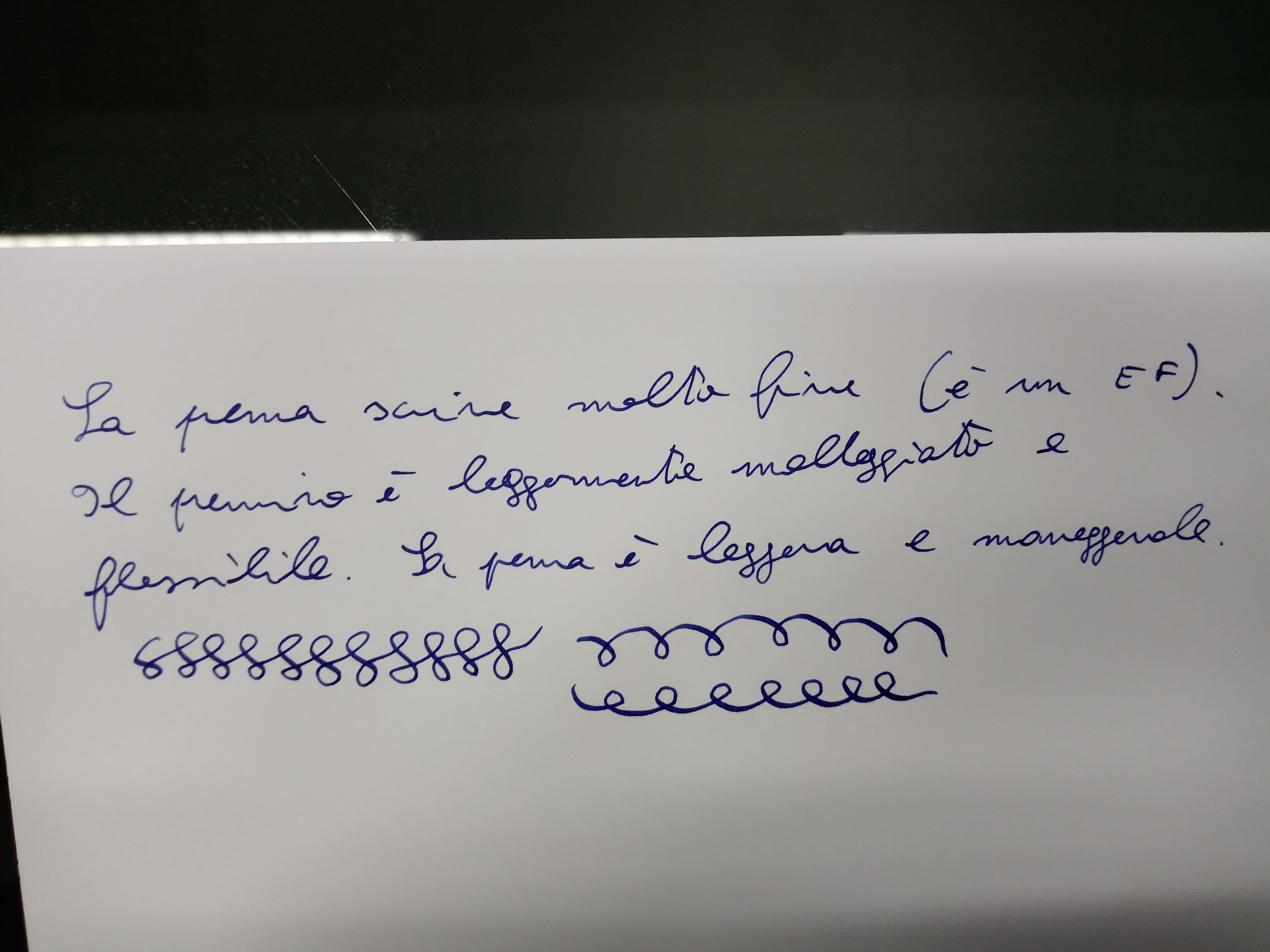 Sono molto soddisfatto del nuovo arrivo. Più avanti cercherò una gemella, ma a righe verdi, con pennino F.