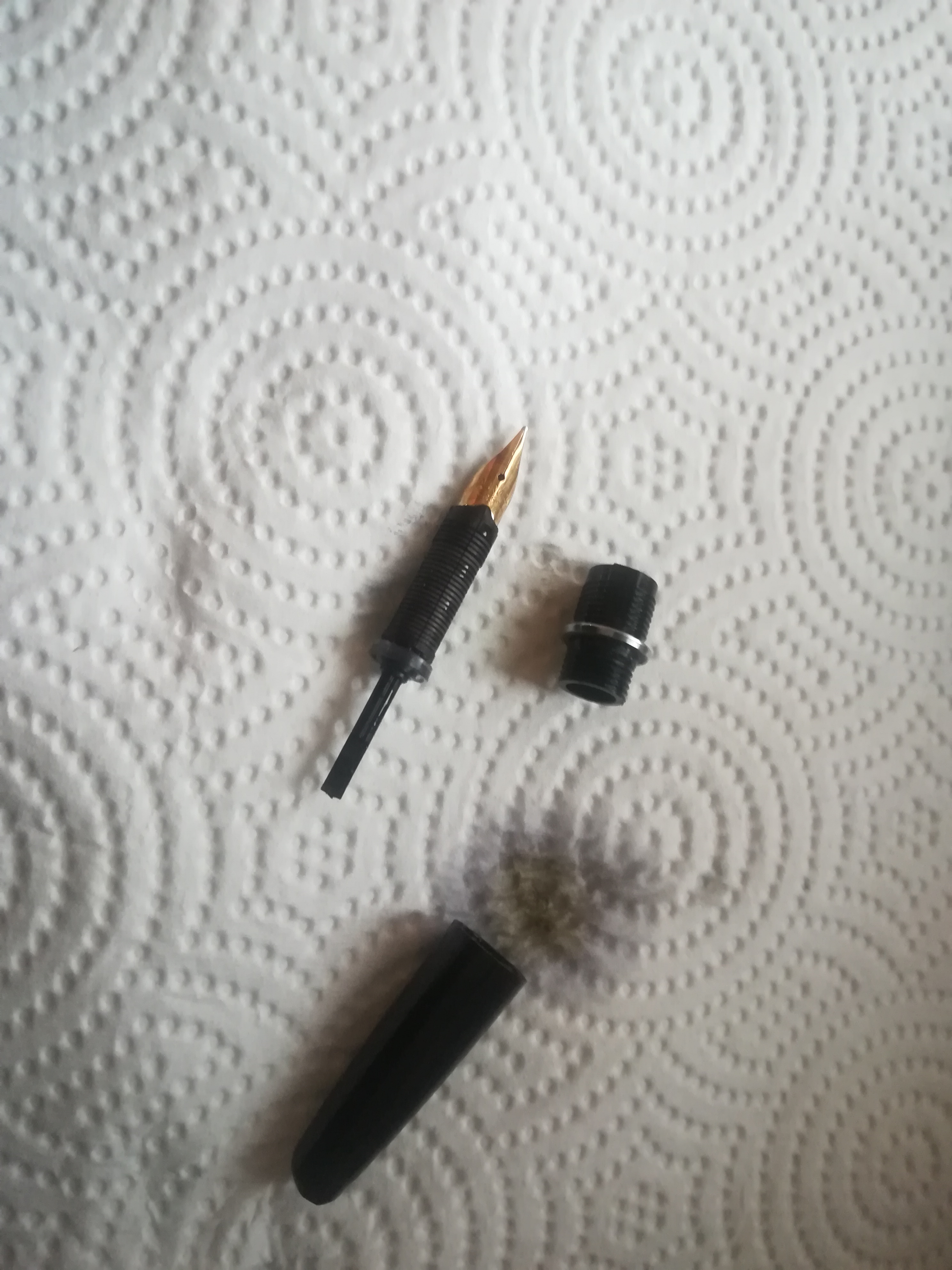 Sfortunatamente mi sono accorto di un problema più grave: l'inchiostro trafila dalla sezione, più precisamente dall'anello color argento. Forse un po' di grasso siliconico e una stretta più decisa potrebbero risolvere? Aggiungo che ho dotato la penna di un converter Parker che ho puntualmente controllato.