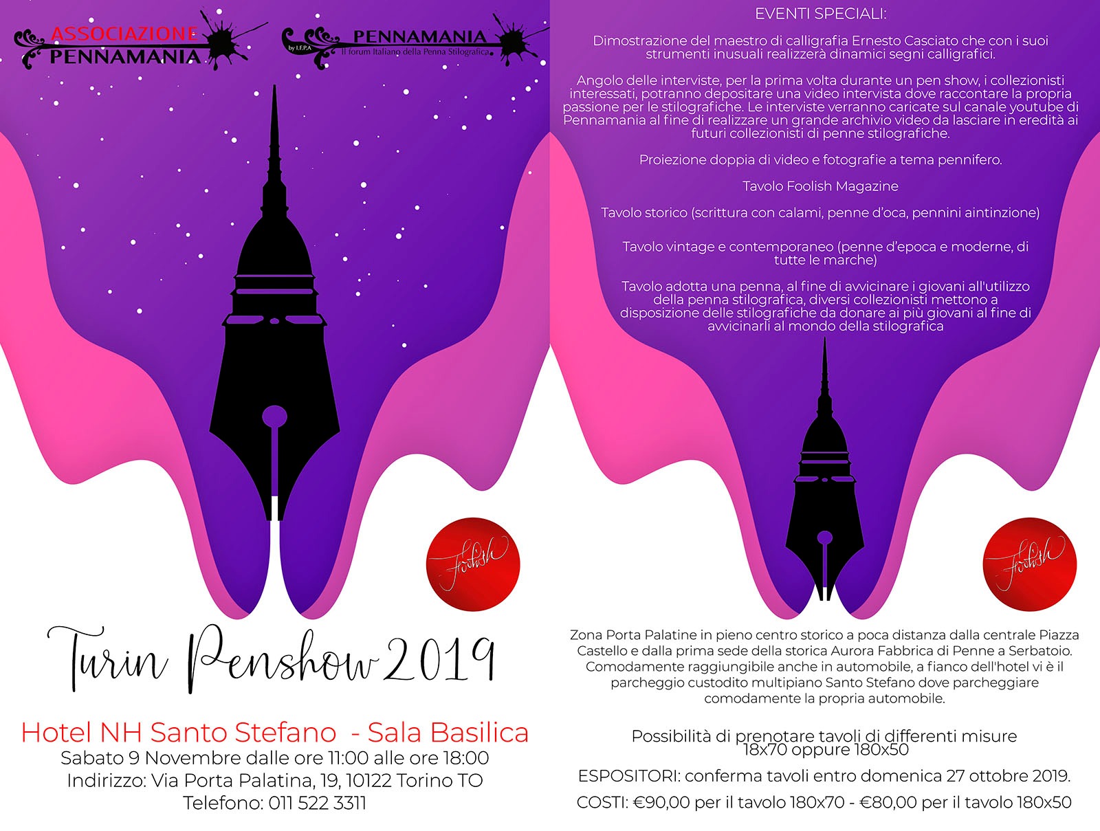 Ingresso 10 euro come quota associativa base annua che vale per il penshow, i pennamania day ed altri eventi che si svolgeranno nel corso dell'anno.