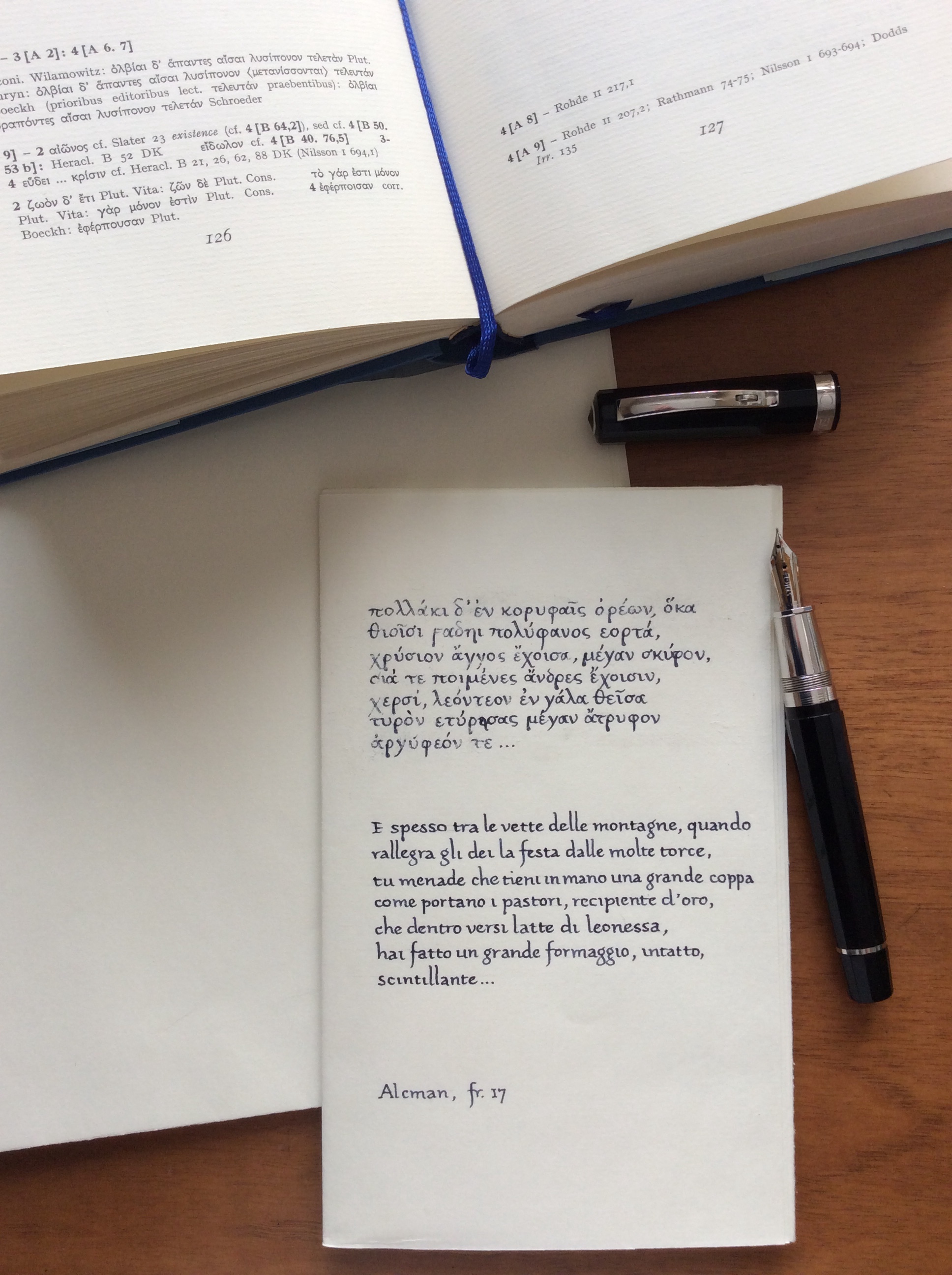 Passo dall’Italia, in giro per lavoro, e ne approfitto per passare qualche giorno con papà e mamma, entrambi a pochi giorni dal loro novantesimo compleanno. Che fantastici! E passo qualche giorno nella casa dove sono cresciuto, tra le cose che non ho mai portato via con me (nè lo farò questa volta, ahimè...): cerco tra i miei libri e sfoglio la raccolta che il grande Giorgio Colli aveva curato per Adelphi, frammenti della sapienza greca che cercano di ricomporre il mondo del pensiero presocratico. Che buon odore le pagine un po’ ingiallite, che belli i caratteri greci accanto a quelli latini...