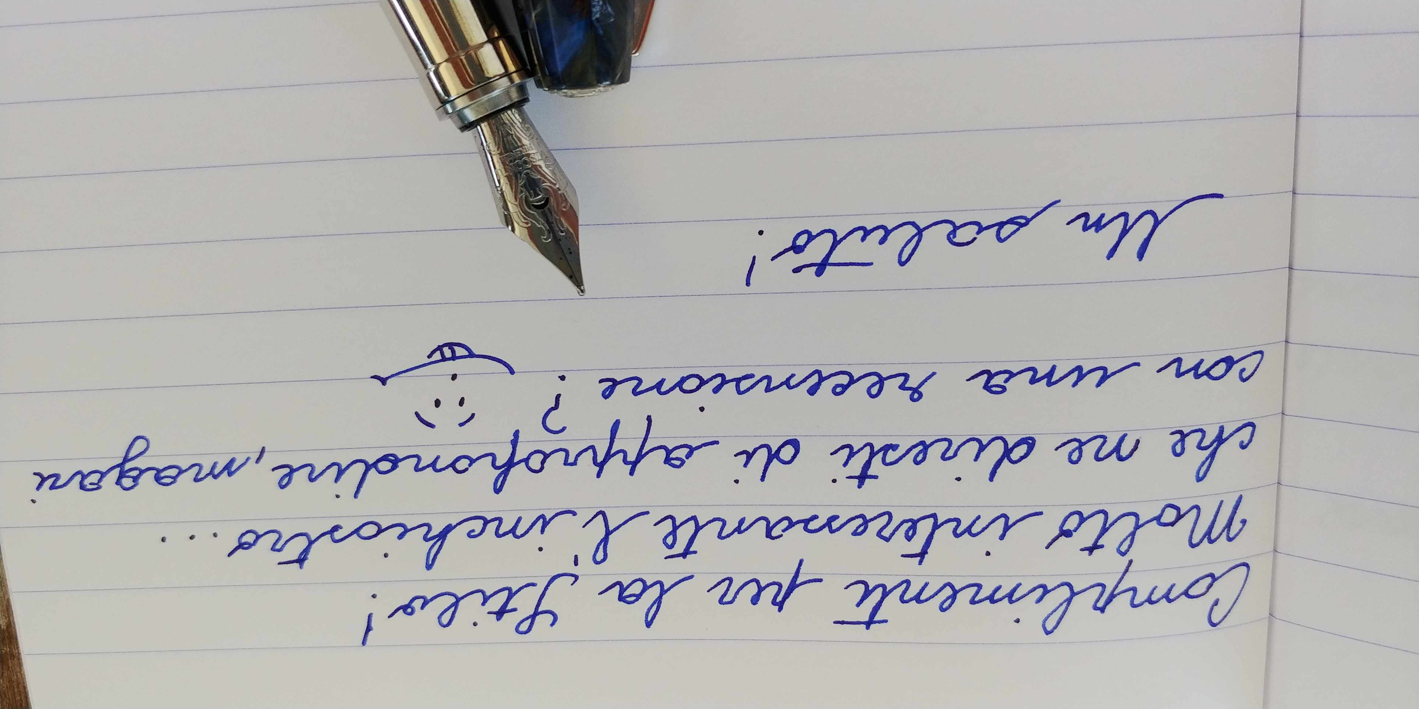 Scrive al momento bene, abbastanza fine (per me necessario, tanto non faccio calligrafia, ma scrivo tutti i giorni sulla carta che capita), flusso giusto e saturo. L'ho presa con il pennino selezionato e meshato.