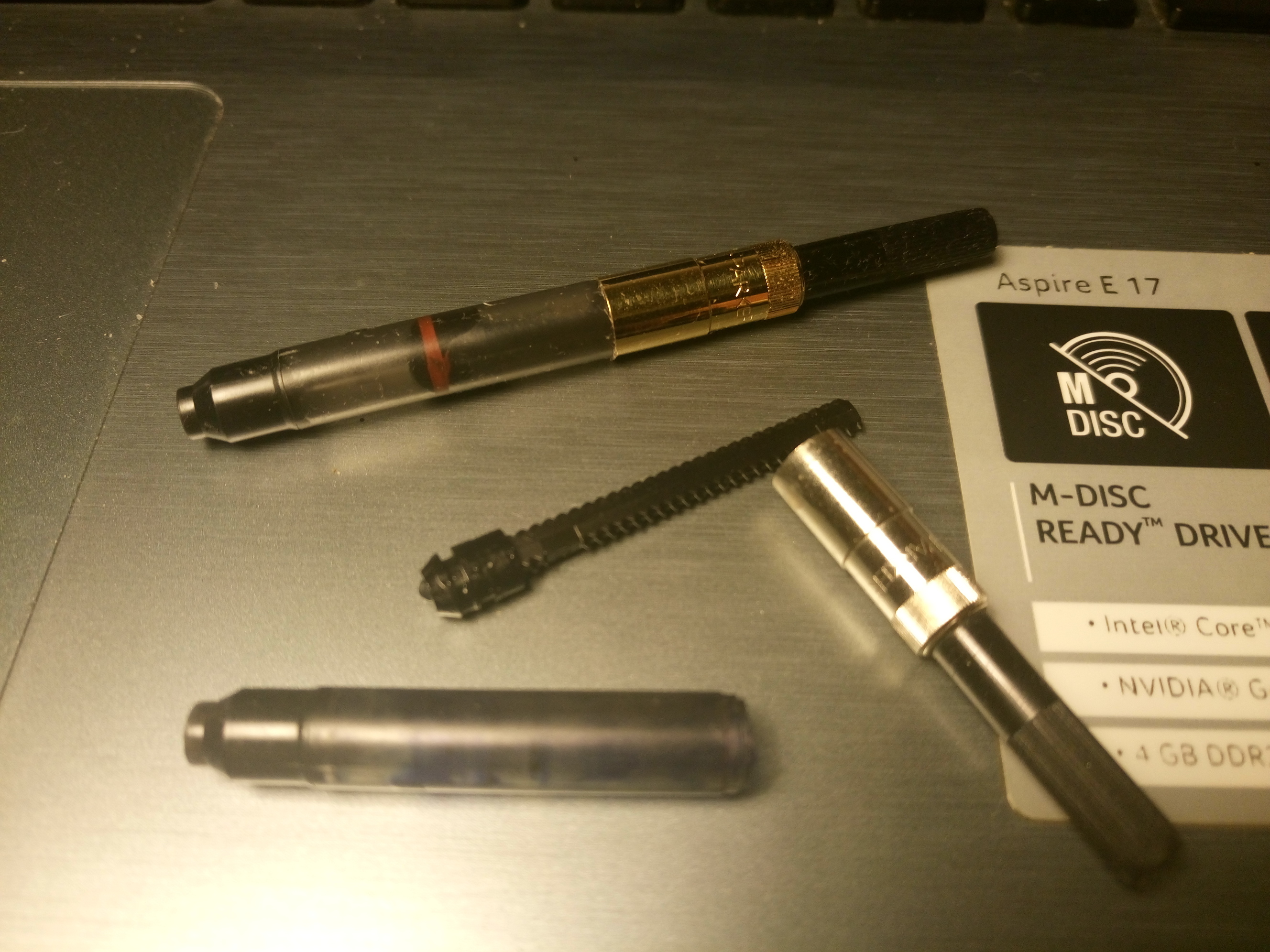 Causa la rotazione abbastanza ampia (cui si è aggiunta anche qualche nuova acquisizione, ehm) sono arrivato alla prova della Parker 45 vintage solo stasera. Vado per caricarla, e non tira su niente. Penso che sia otturata, così per verifica sfilo il converter e provo a caricarlo, senza ottenere risultato.