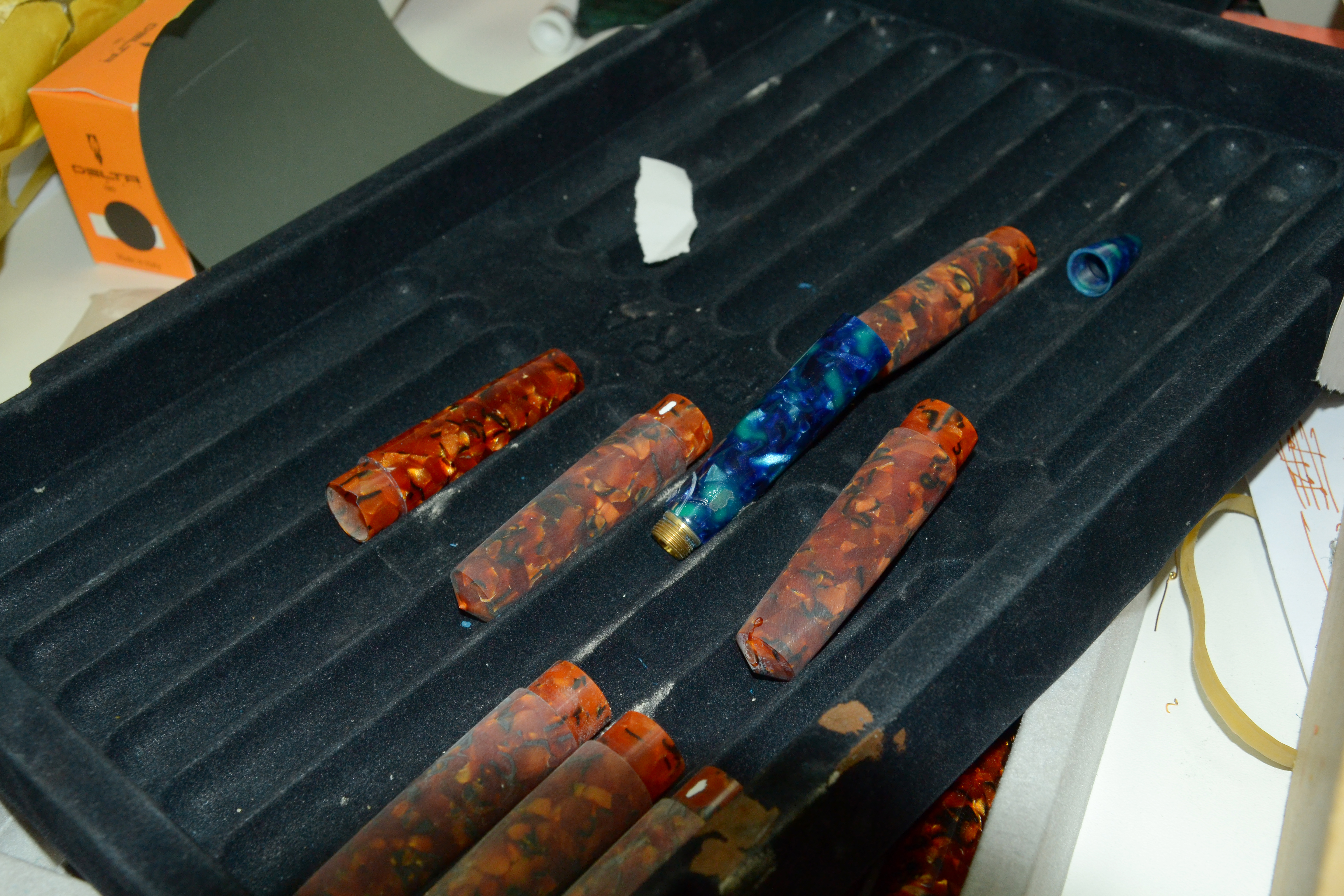 In una delle stanze ci sono delle scaffalature con le varie bacchette di tanti bei colori che serviranno a dare vita alle varie parti che costituiscono la penna.