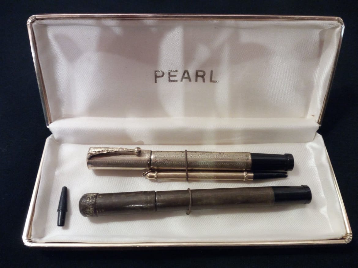 Sono entrambe con pennino rientrante e le ho trovate dentro una scatola con la scritta "pearl" ma potrebbe non esserci attinenza con le penne: