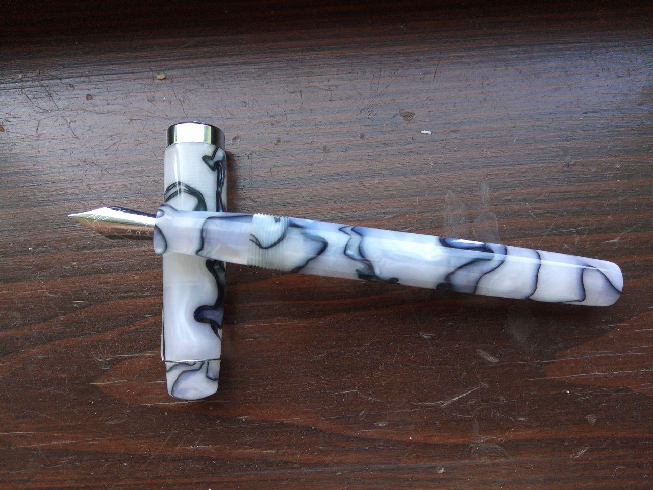 Questa e' una penna abbastanza ben fatta, indiana e non particolarmente costosa, l'ho presa 30 euro da un negozio in Olanda. Ha una certa varieta' di pennini a disposizione ma io l'ho presa proprio perche' avevo sentito parlare del suo pennino flessibile accompagnato da un alimentatore di ebanite decente e del fatto che per averlo in acciaio bastava aggiungere tre euro al prezzo (differente storia se lo si voleva d'oro) e sono stati quei tre euro in piu' che mi hanno fatto prendere la penna.