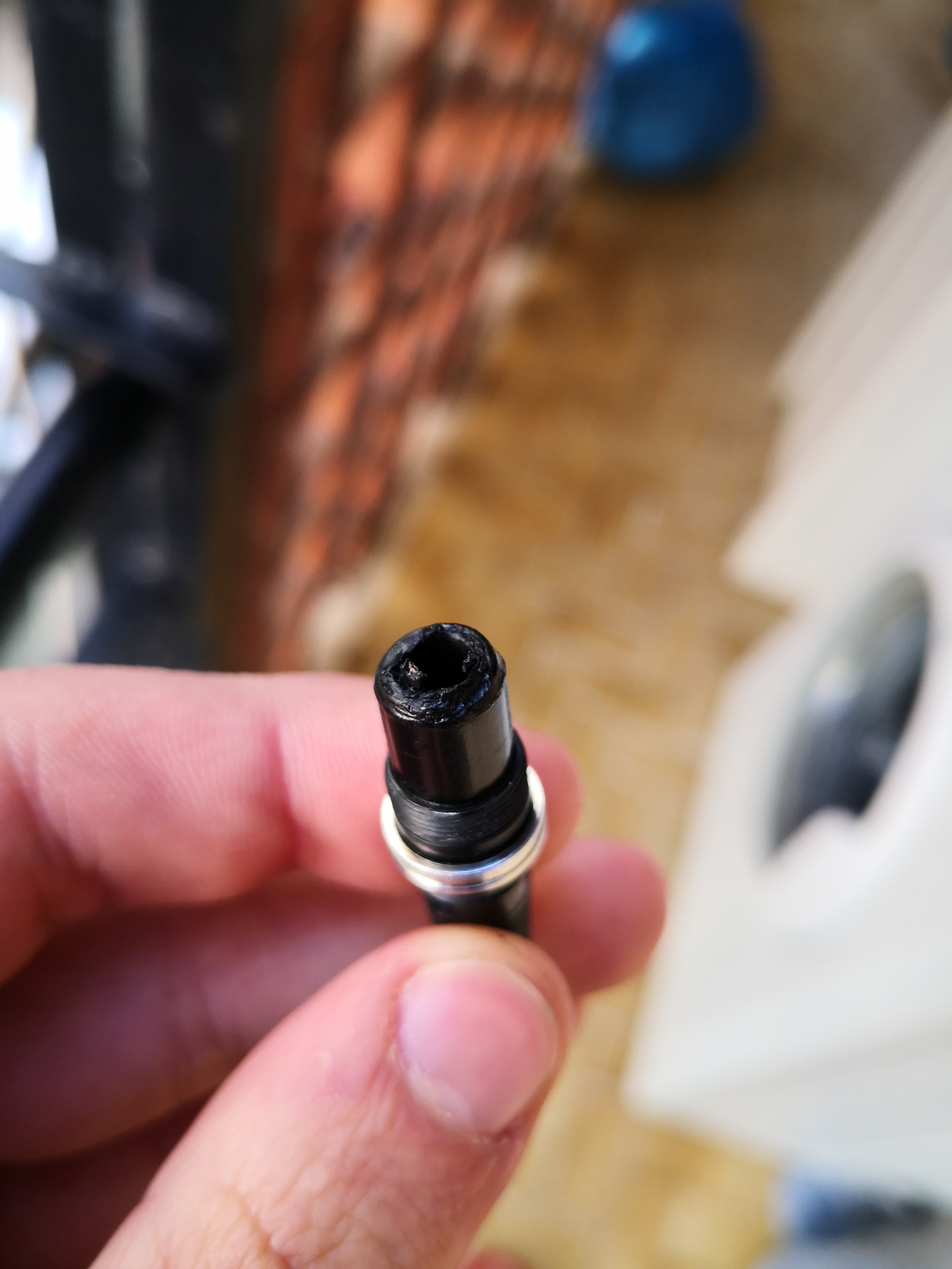 La tacca posteriore la lascerei fare. La "buccia" metallica è incollata al fusto sottostante e separarli non è cosa da tutti i giorni. Soprattutto poi con la tacca che forse ha rotto il sottostante fusto e impedisce lo sfilamento.