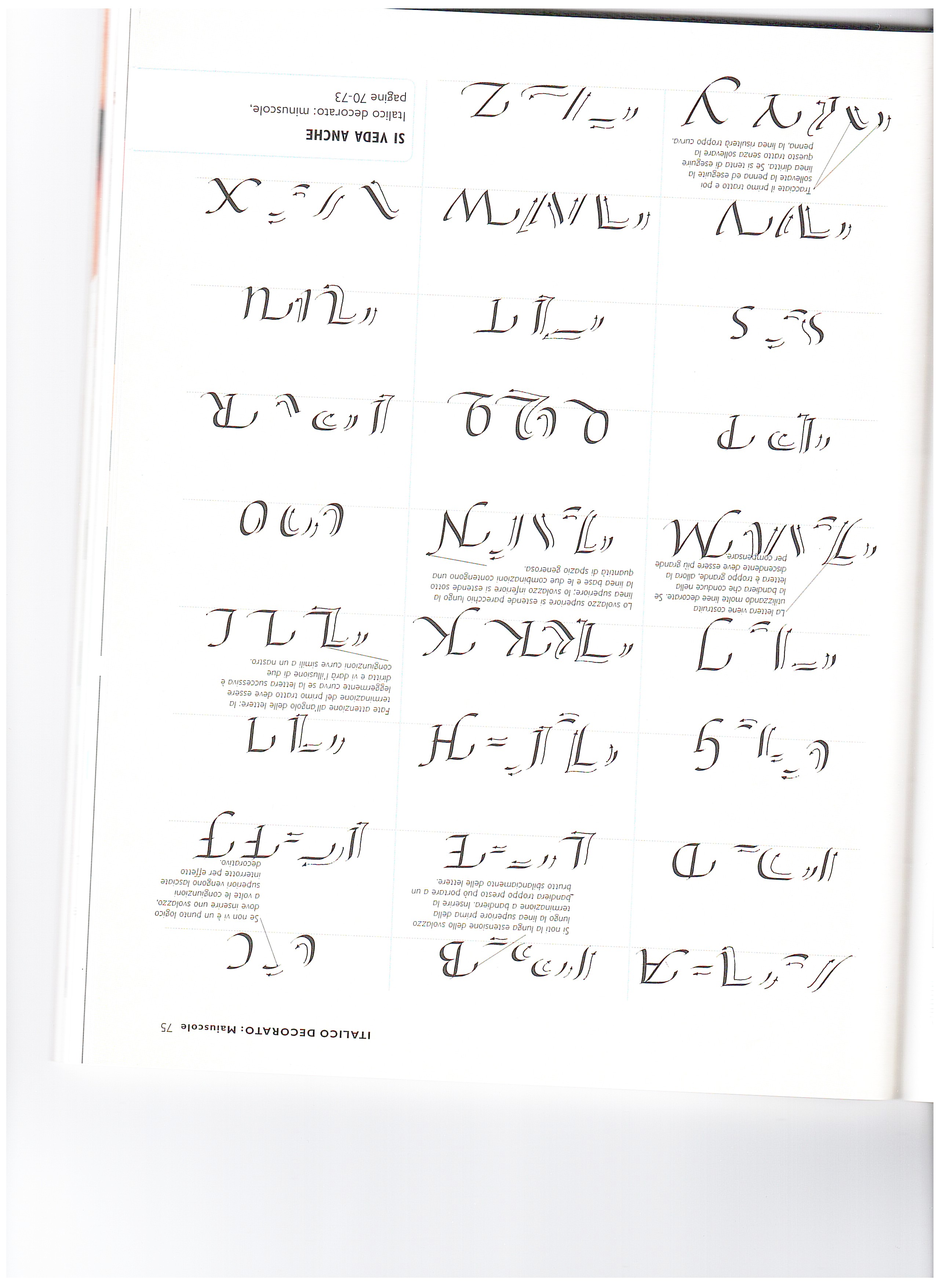 Allego due scansioni di uno stile simile a quello che mi sembra essere di tuo interesse (minuscole e maiuscole). L'autore lo chiama "italico decorato" (ma non è la denominazione ad essere importante).