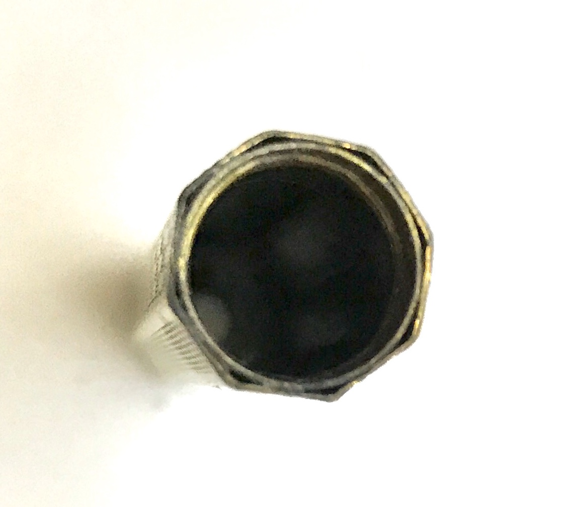 L’anonima di cui sopra non è solo anonima ma per me novizio della materia anche strana. Infatti non ha un corpo di ebanite come le altre rivestite in metallo che vedo in rete e ho visto dal vivo, ma è tutta in metallo: un corpo cilindrico di metallo è rivestito da uno ottagonale. Che senso ha?