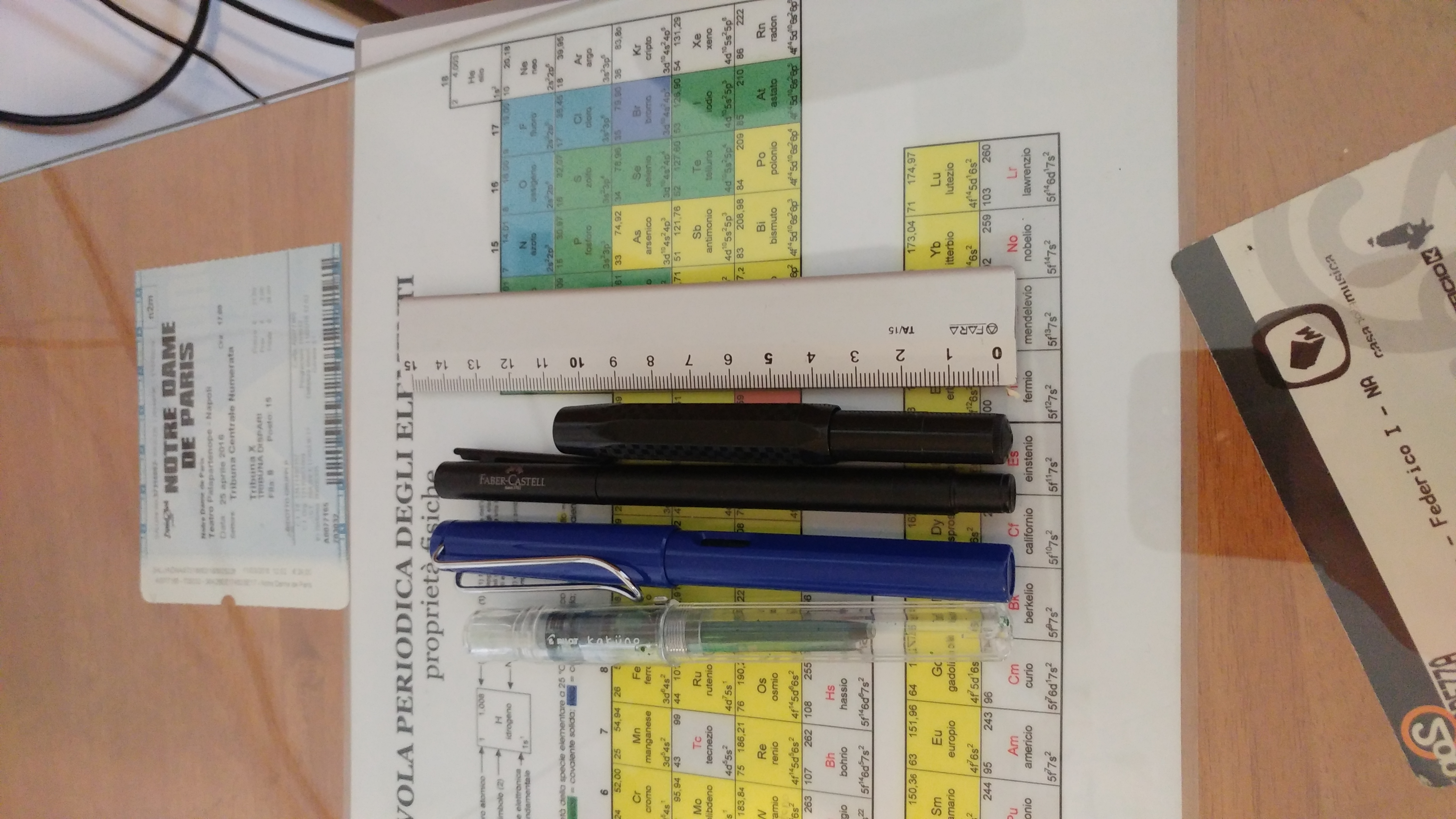 Da un po' sono alla ricerca di una sostituta della Wing Sung 698 da usare con il converter o a cartuccia negli spostamenti di media durata e la Lamy CP1 aveva attirato la mia attenzione, ma ho una Safari e non ne apprezzo ne il pennino F ne l'EF. Inoltre non ho simpatie per gli attacchi proprietari, specie se non esistono inchiostri resistenti all'acqua. Negli scorsi mesi ho provato una Faber Castell Loom EF e ho acquistato da Stilo e Stile una Pilot Kakuno. Nessuna è riuscita a scalzare la cinese. La tedesca mi ha colpito per il pennino ma il peso e l'ergonomia mi hanno fatto desistere dall'acquisto, la giapponese è troppo larga e rilascia delle gocce d'inchiostro sul tavolo.