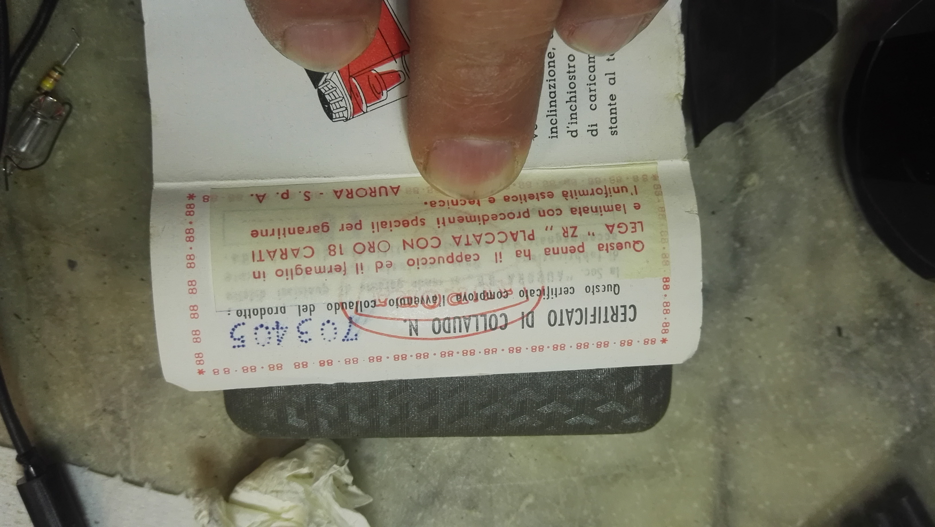 La mia 88P ha un numero di serie più alto di quello indicato qualche messaggio prima: è la n. 3150354. Ho la scatola con la sua garanzia e all'interno c'era la pubblicità dell'inchiostro Aurora Biflux (che potrebbe anche essere stata aggiunta in seguito).
