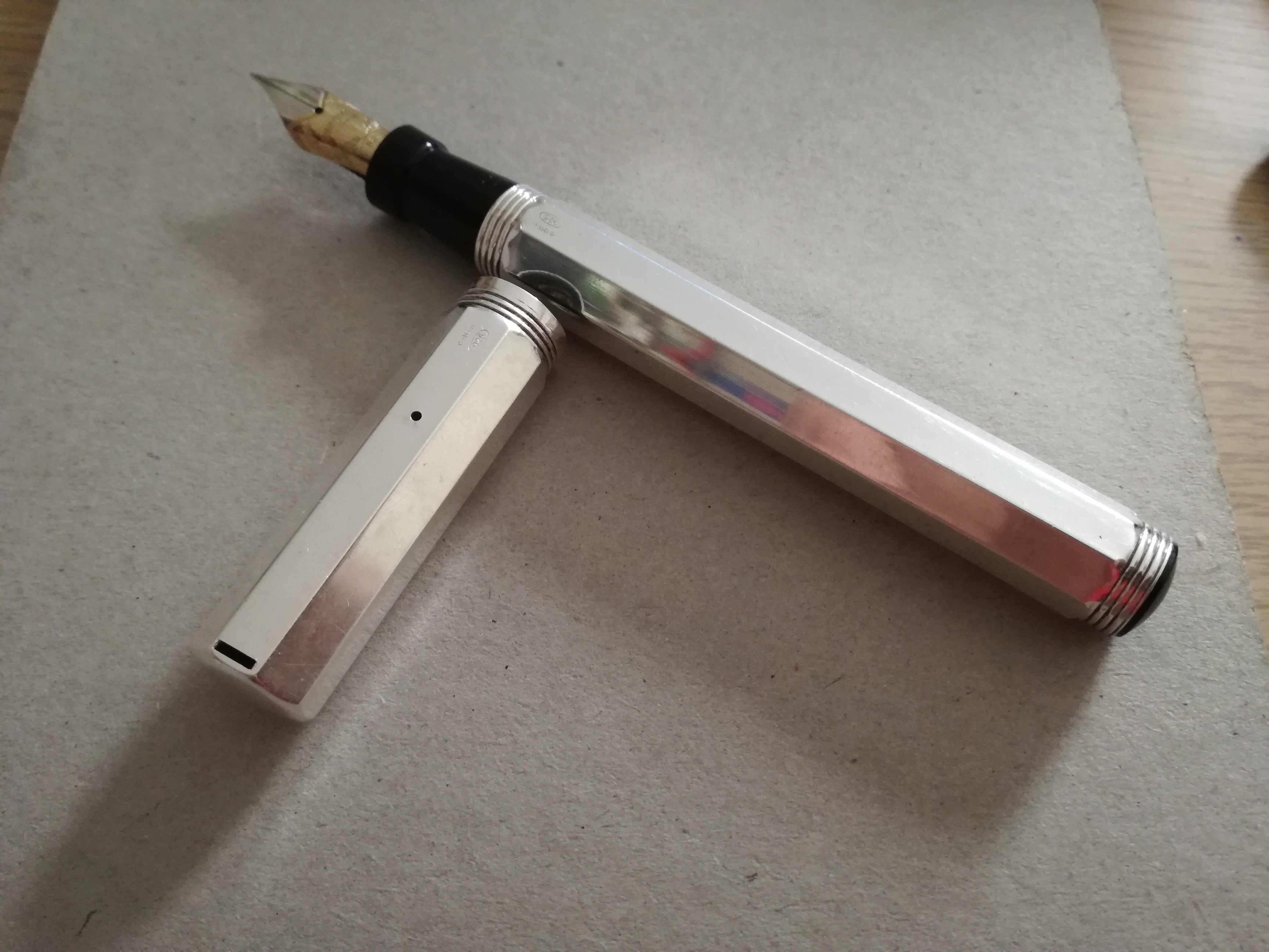 Bella la penna e bello il lavoro di lucidatura, complimenti. Il cappuccio estratto mi ricorda la caldaia della moka, la parte dove si mette l'acqua, ma questo è un mio problema dispercettivo