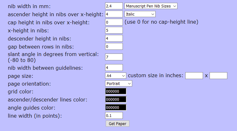 Se usi altri pennini l'unica impostazione da cambiare è "nib width in mm" dove invece di 2.4 devi digitare la larghezza del pennino che intendi usare. Se invece desideri smanettare ulteriormente (il programma è molto molto versatile) scrivimi pure e vediamo cosa fare.