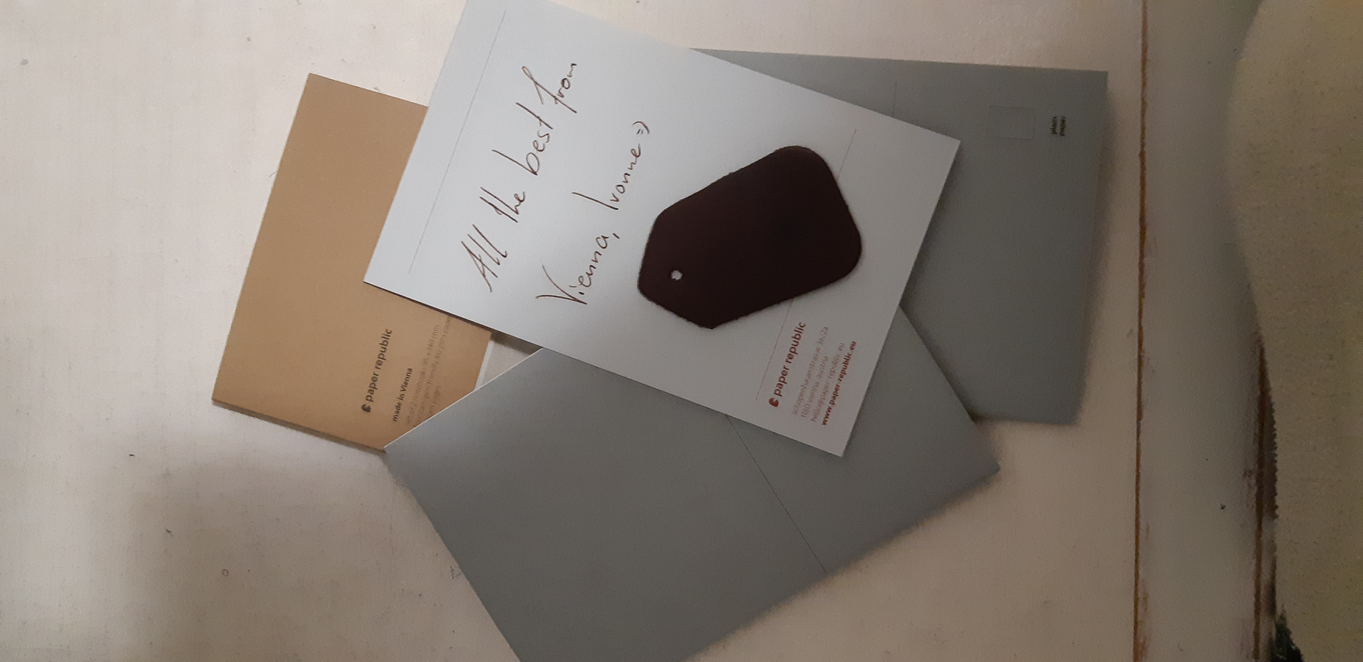 Sono arrivati anche a me, carino il cartoncino di ringraziamento scritto a mano e il campione di cuoio.