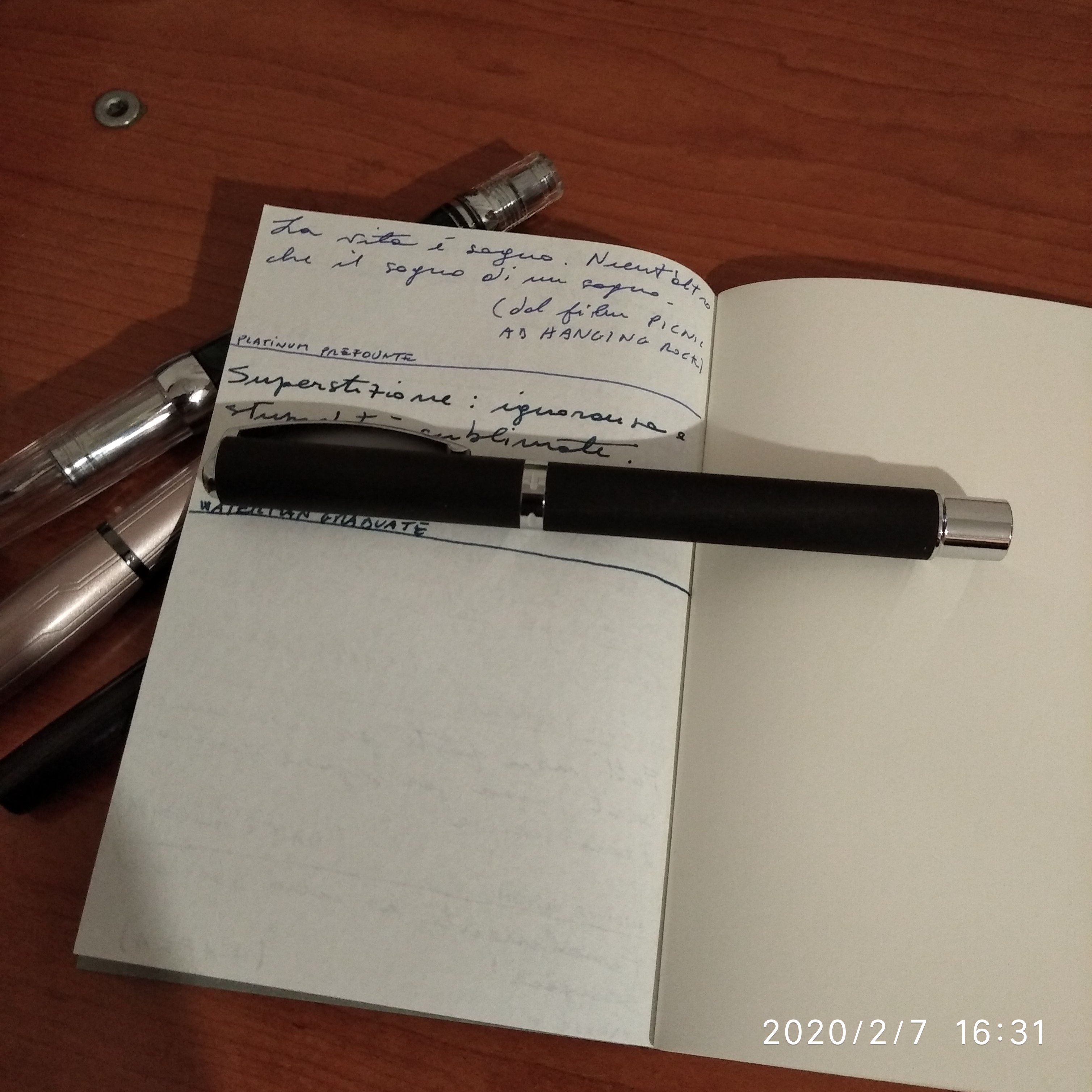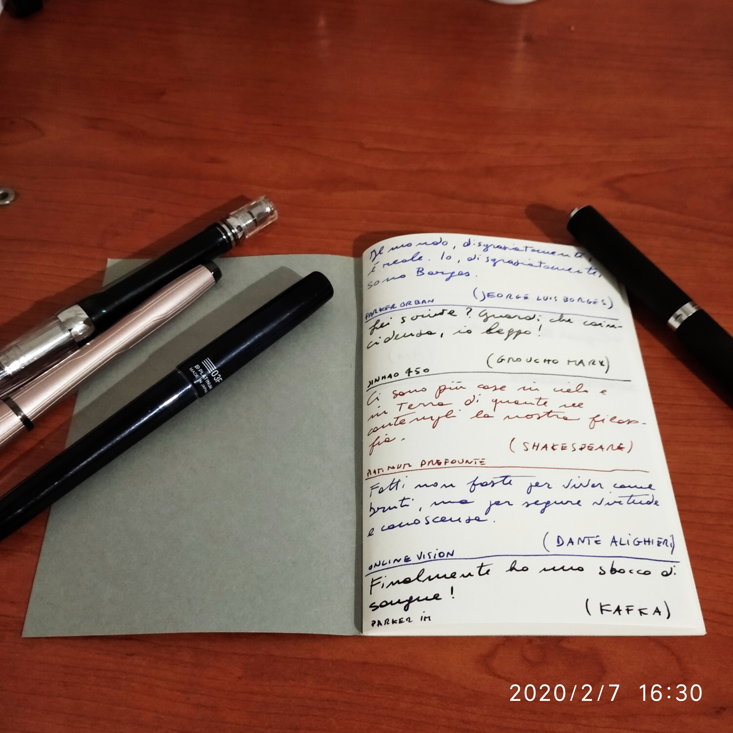 Comunque ne ho iniziato uno come frasario. La carta è sottile, l'inchiostro non trapassa, ma la scrittura sull'altra facciata si vede troppo, per i miei gusti...