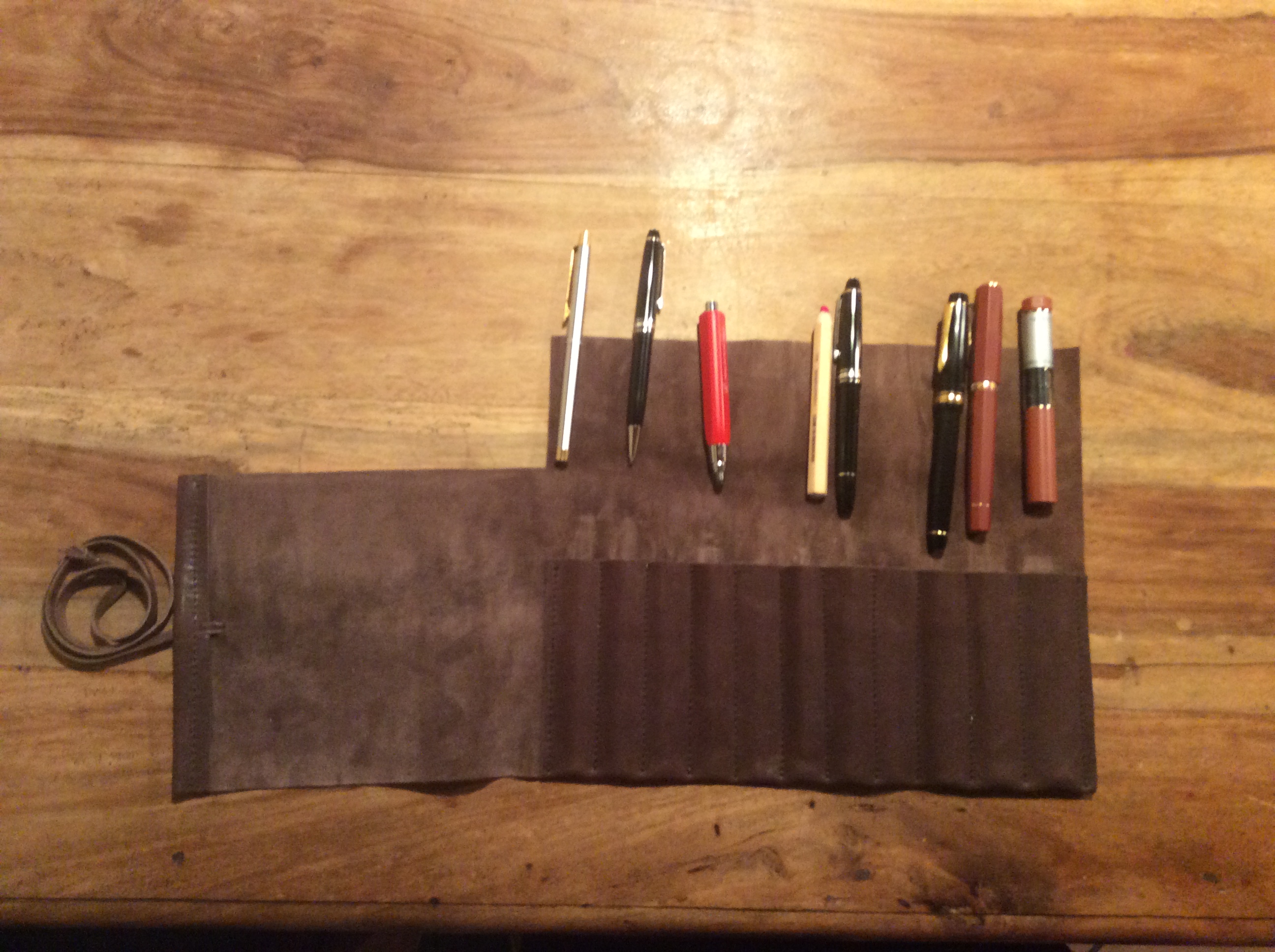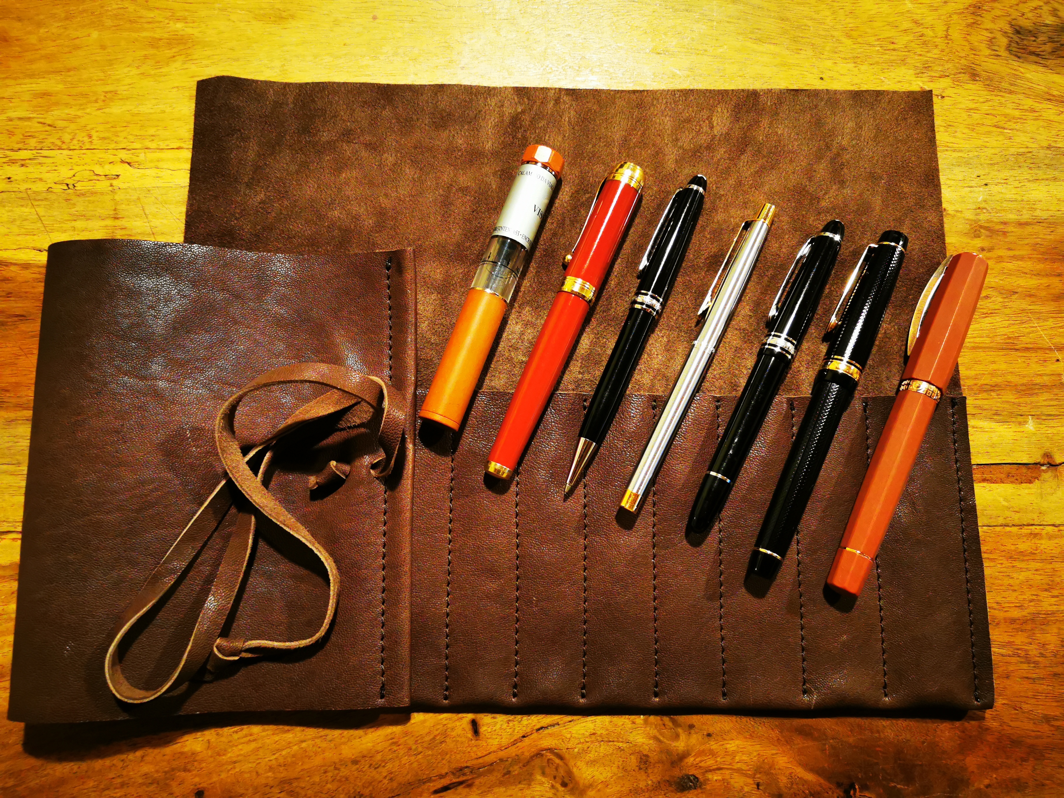 In ultimo per portare con me tutte le mie penne ed usarle in ogni circostanza possibile, mi sono fatto realizzare un porta penne in cuoio da un artigiano vicino a casa mia, quindi ecco la mia piccola collezione di strumenti di scrittura.