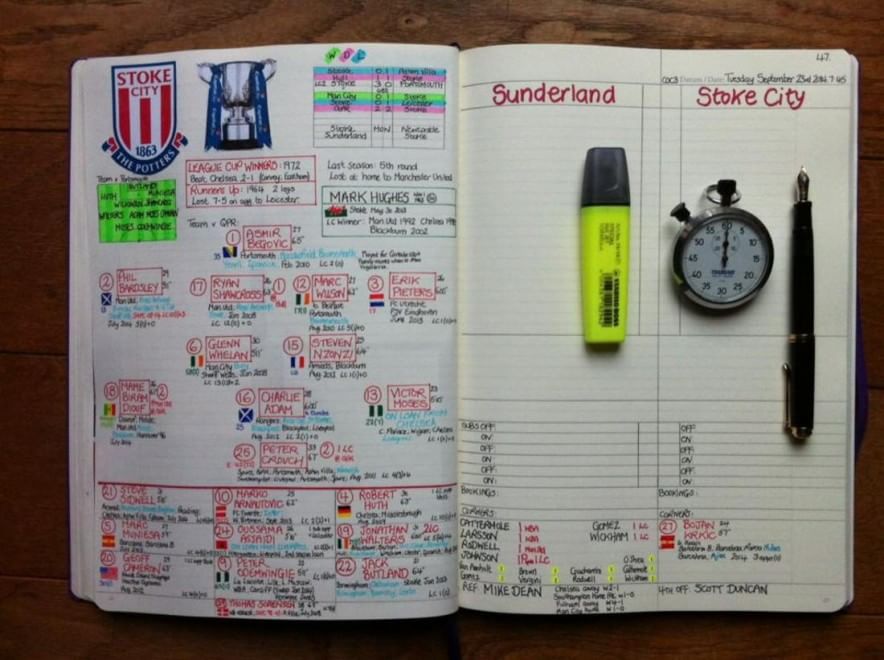 Non se e quanto sia bravo come radiocronista, ma di certo i suoi resoconti scritti delle partite sono particolarissimi. Non utilizza obbligatoriamente stilografiche (anche se in qualche foto si vedono), ma il suo lavoro mi sembra meritevole di essere visto.
