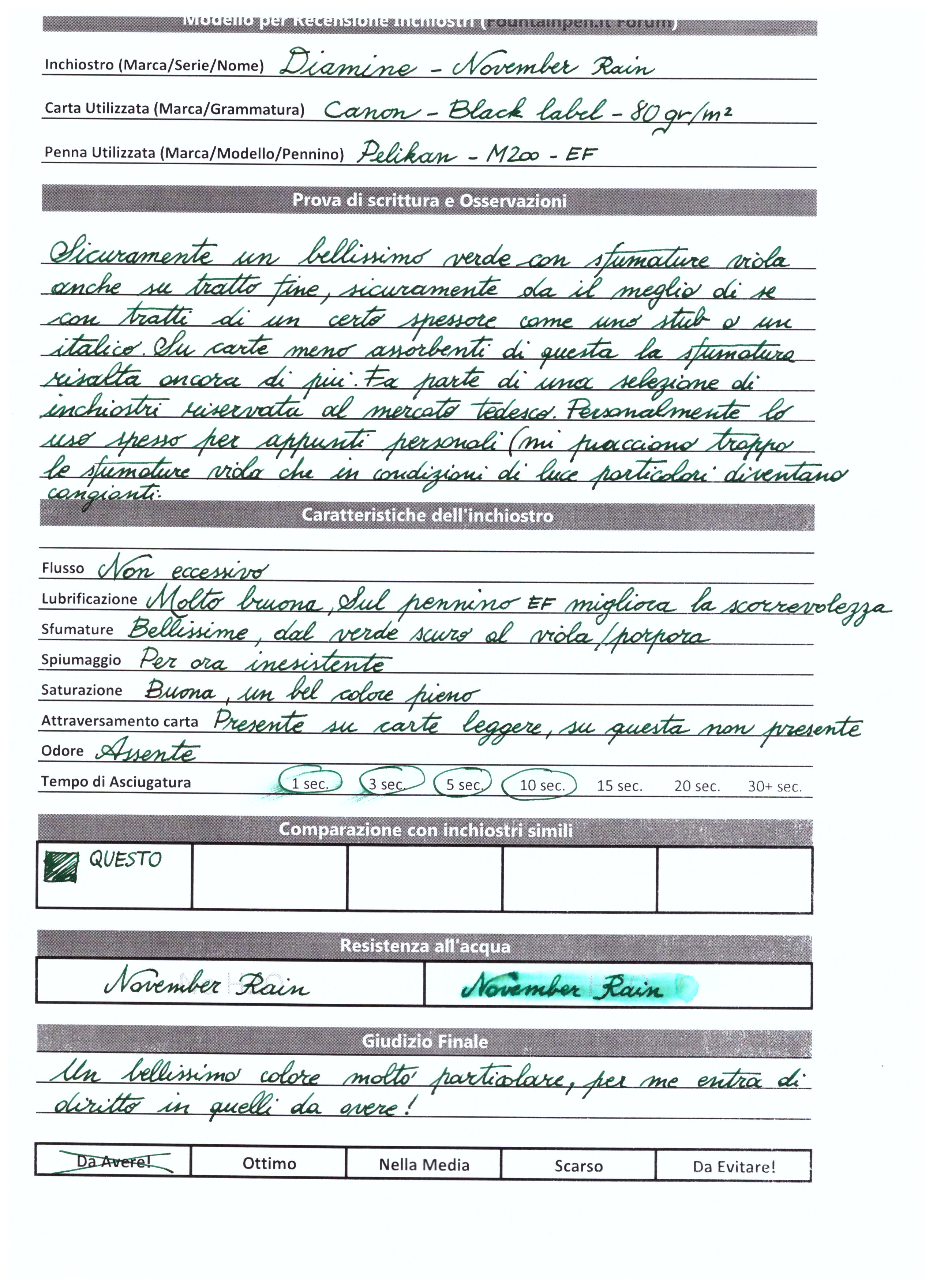 ti dirò che l'Organics studio era anche una scelta possibile, ma ho visto da diverse parti che può creare dei depositi nella penna ed inoltre c'era qualcuno che si lamentava che aveva la tendenza a seccare anche dopo una piccola pausa. Io scrivendo per lo più con EF ed utilizzandolo per appunti personali anche durante conferenze e corsi, non volevo avere spiacevoli sorprese in merito per cui sono andato su questo. Per ora comunque, mai fatta una falsa partenza anche dopo un po di stop, oltre a non aver riscontrato problemi di intasamenti o altro.MatteoM ha scritto: ↑venerdì 20 marzo 2020, 21:25 Con tutti quei riflessi porpora mi ricorda il Nitrogen di Organics Studio...