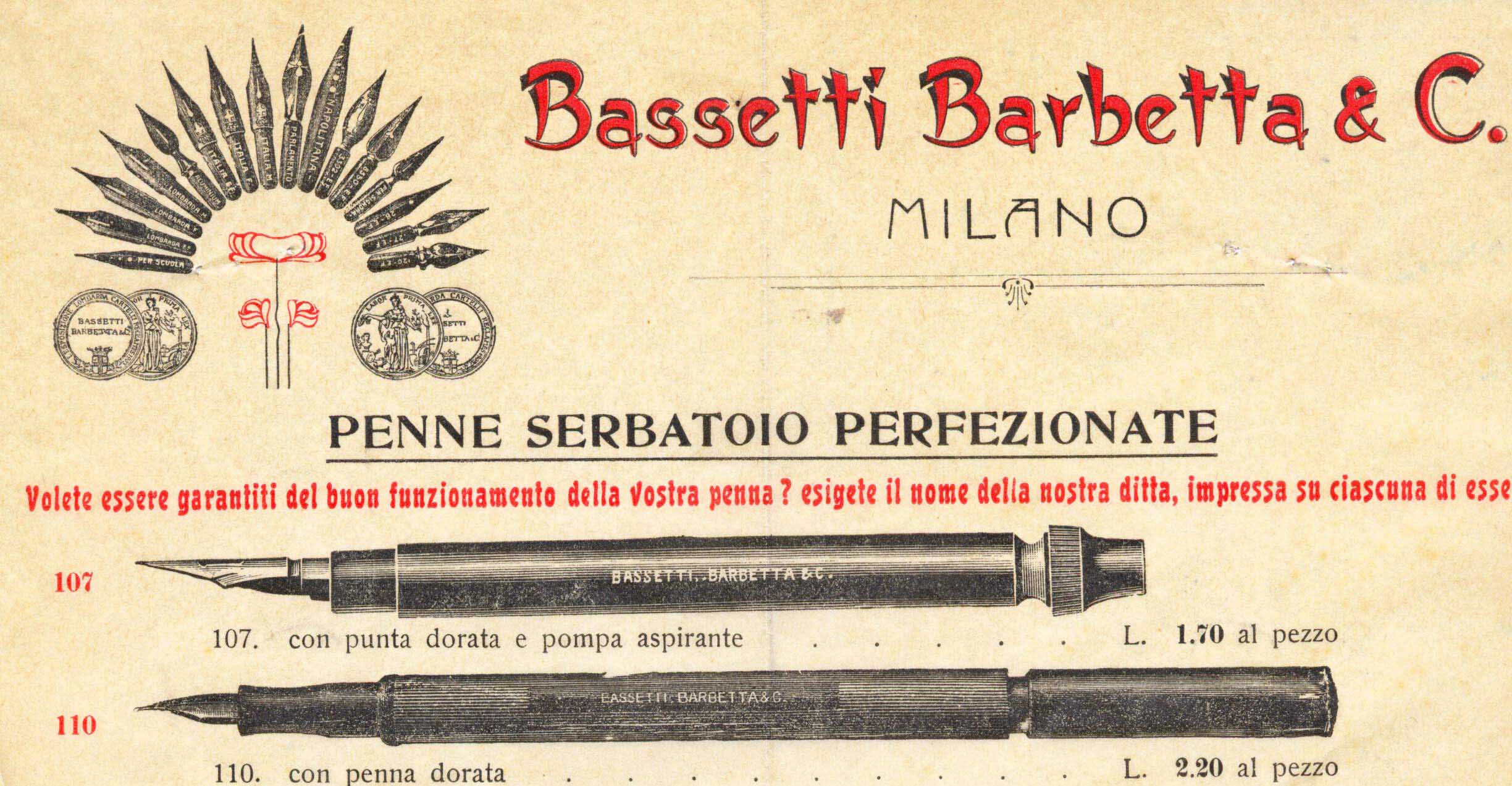 La ditta di Bassetti Ferruccio e Barbetta Vittorio, può essere documentalmente annoverata come una delle prime aziende italiane, se non la prima, produttrice di penne stilografiche.