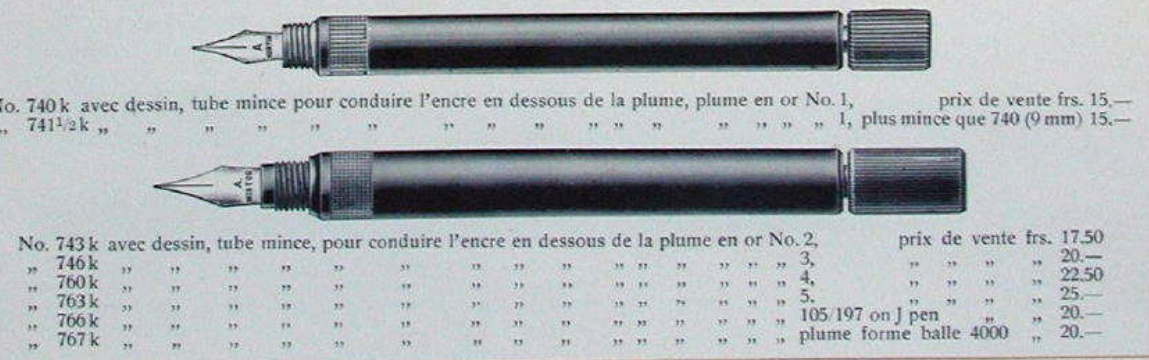 La stilografica in questione è praticamente uguale, alla seconda che mostro nella parte del catalogo che allego (Simone, a tempo debito ti farò avere la scansione completa in elevata risoluzione), venivano prodotte con screw and unscrew cap; quella trovata da LucaC ha il capo con la vite, quella rappresentata senza vite.
