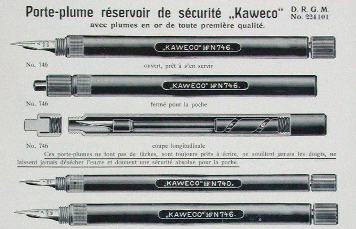 Che poi alla Kaweco per realizzare la loro rientrante si fossero ispirati alla Caw’s pen (era molto famosa in USA essendo pubblicamente utilizzata dal presidente) o che avessero stretto accordi con F.C. Brown alla esposizione di Parigi del 1889, oggi non trova risposta.