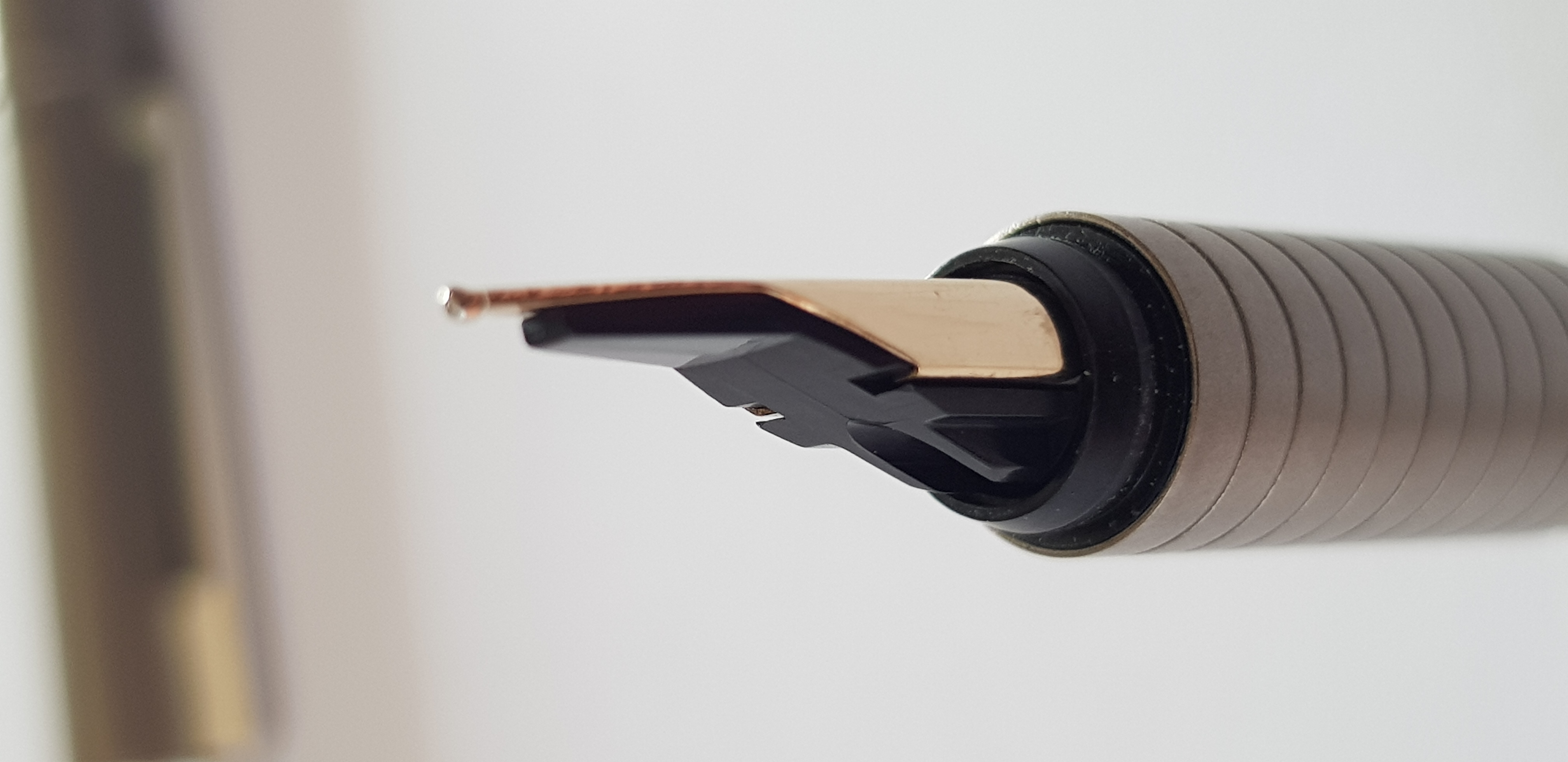 da questa foto forse sembrerebbe più evidente un leggero scostamento del rebbio dall'alimentatore... procedo con le dita oppure appoggiando il pennino si carta e premedo delicatamente far fare meno danni possibile?