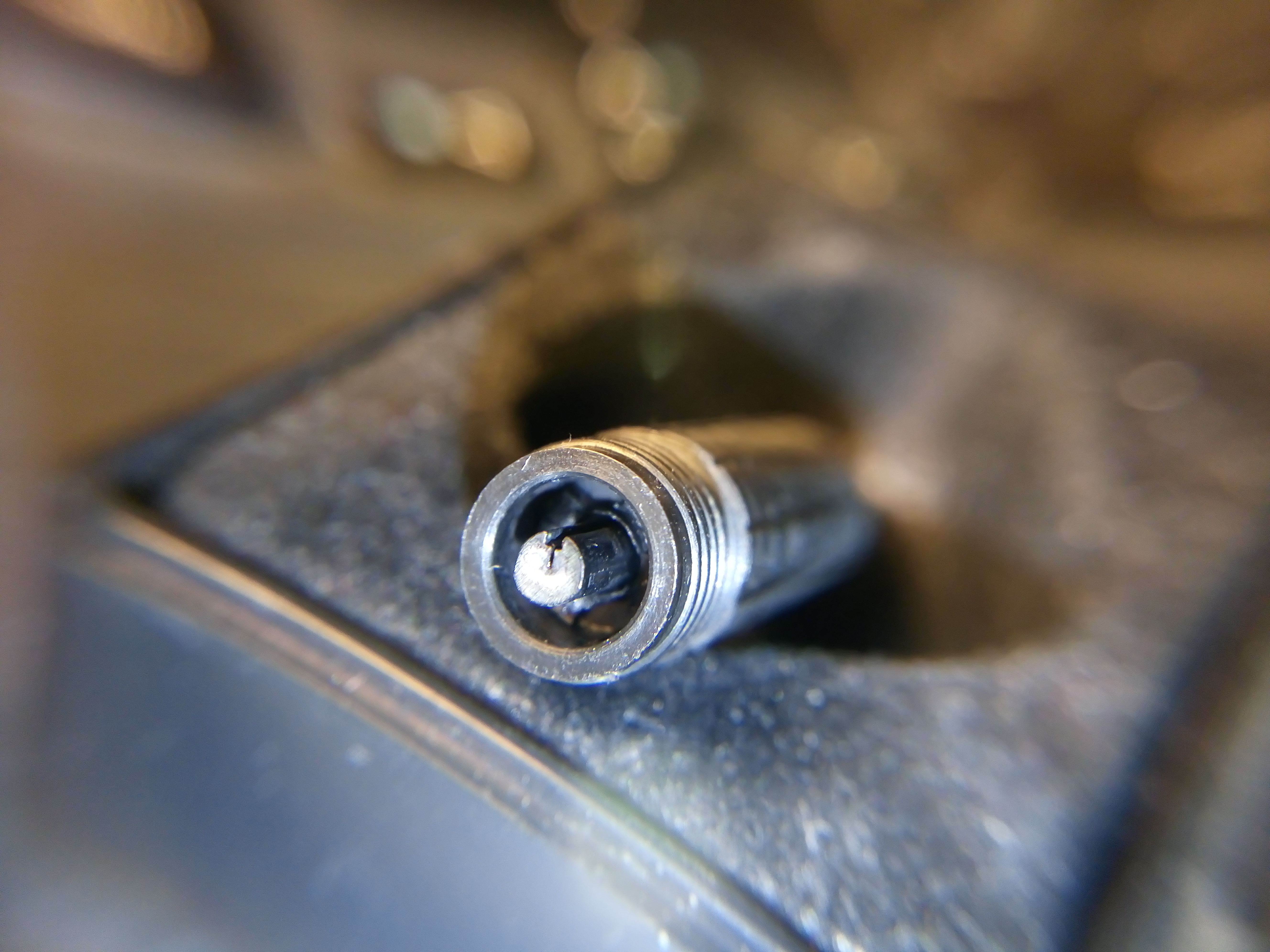 Allora inizio ad analizzare la situazione, e mi accorgo che la cartuccia che avevo trovato già innestata sulla penna (e che avevo "riciclato" riempiendola con una siringa) in realtà non è una cartuccia Aurora, ma una "standard Pelikan". Il risultato è che, controllando lo spillo di alimentazione con la lente 30x, si vede che intorno ad esso ci doveva essere una specie di cilindretto di plastica a dare lo spessore "Aurora", che ha l'imbocco più largo del Pelikan.